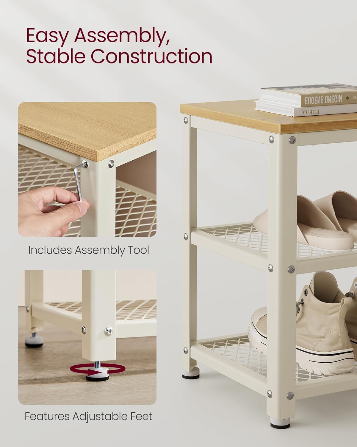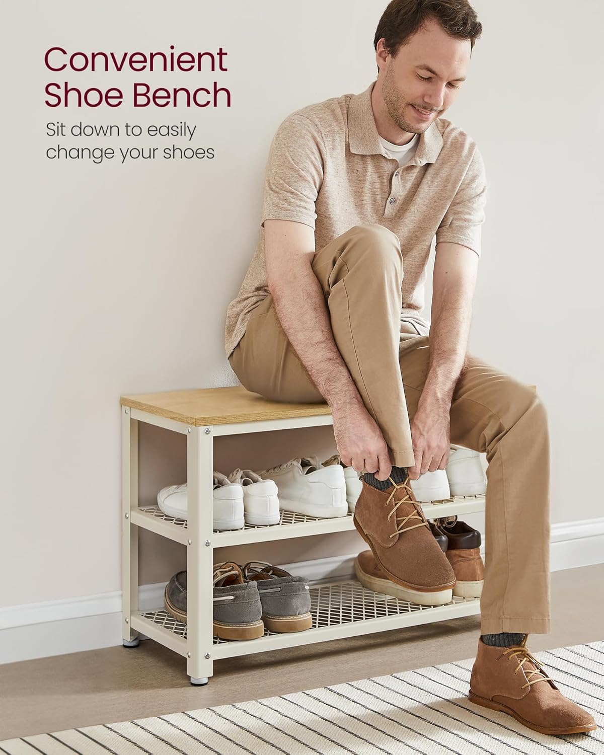 Denne skobænk er bygget til at holde. Den er fremstillet af et robust stålstel og holdbar spånplade, der tilsammen sikrer en solid konstruktion, som kan bære op til 90 kg. Det giver dig en stabil og behagelig siddeplads, når du skal tage sko på eller vente på, at familien bliver klar.