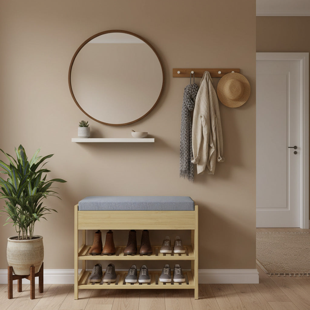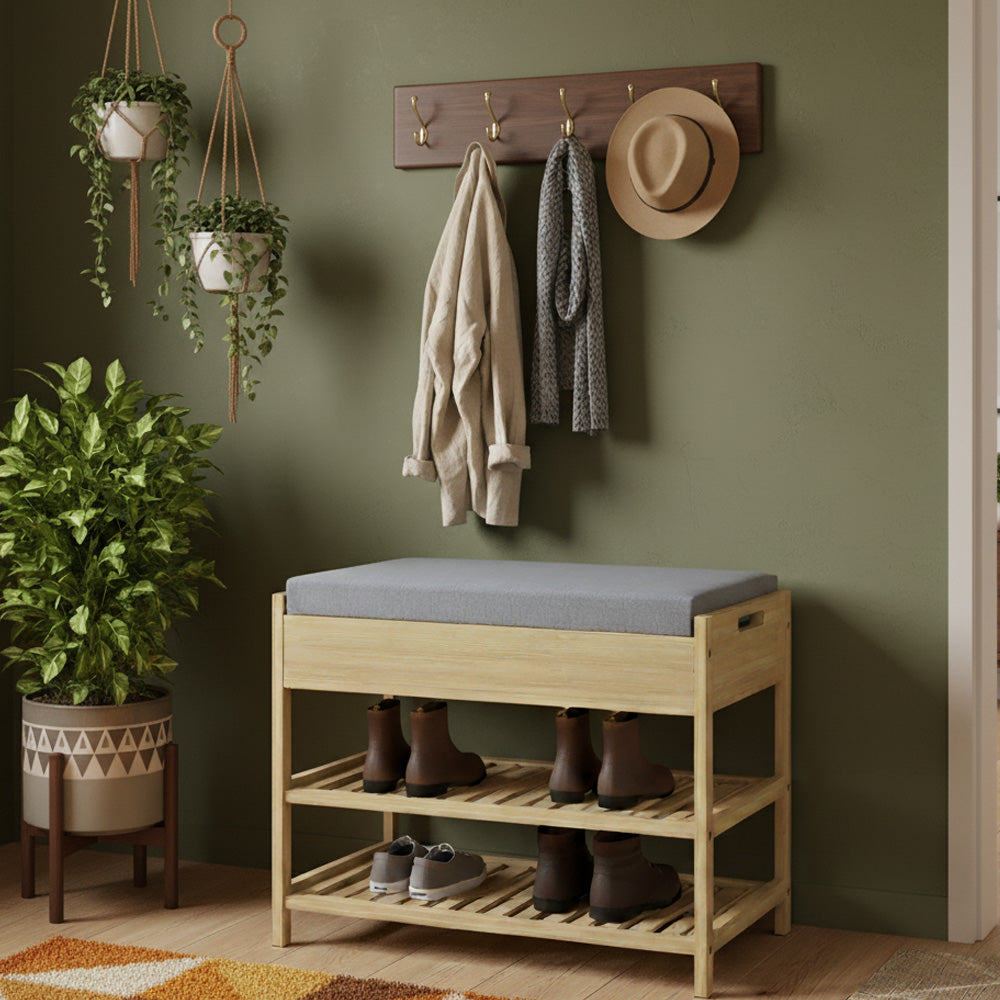 Organiser dine sko med denne skobænk, der skaber en ryddelig entré. Det åbne design gør det nemt at finde dine sko med et hurtigt blik, og en skuffe på siden giver skjult opbevaring. Det polstrede opbevaringsområde oven på bænken sparer dig besværet med at skifte sko, når du læner dig op ad væggen, inden du går ud.