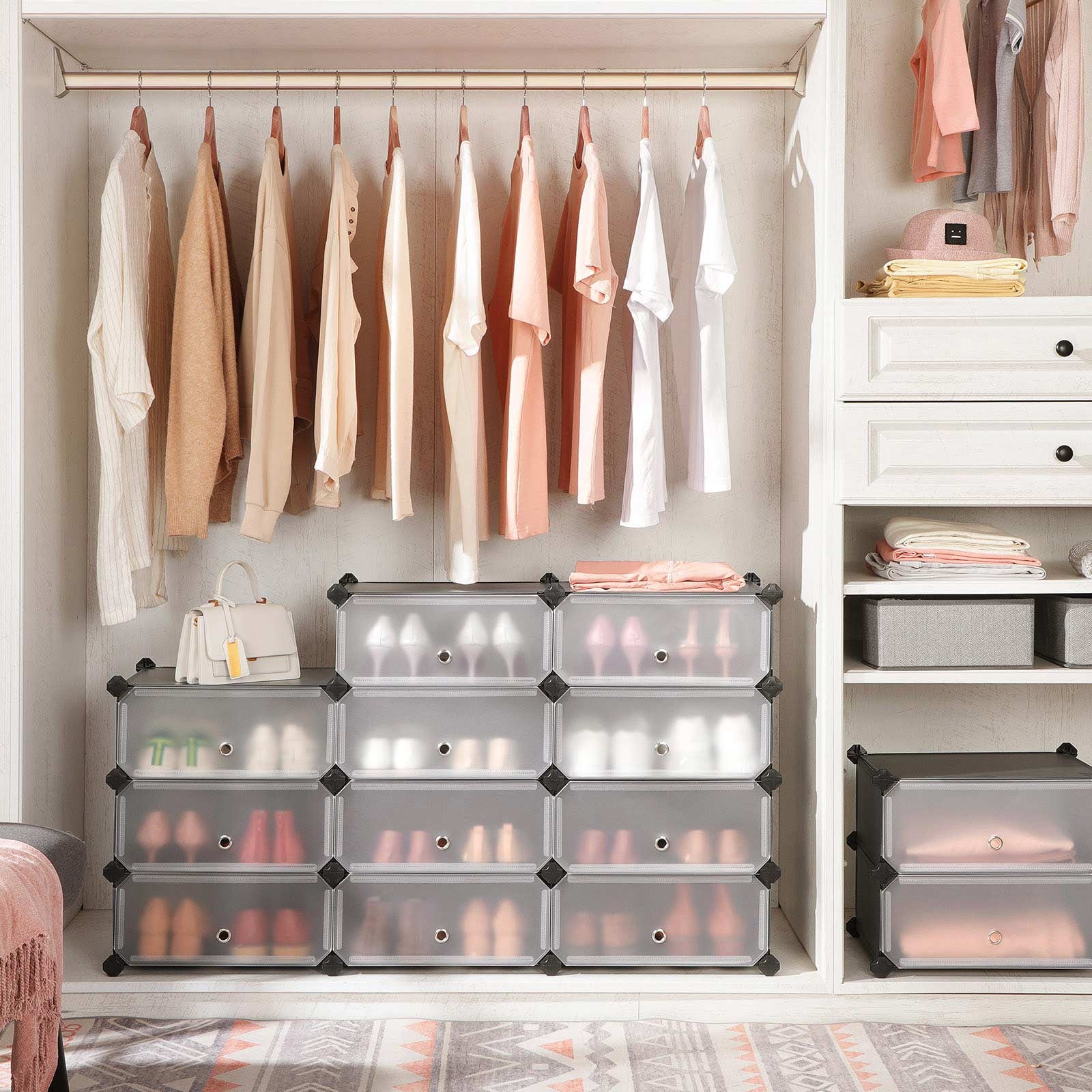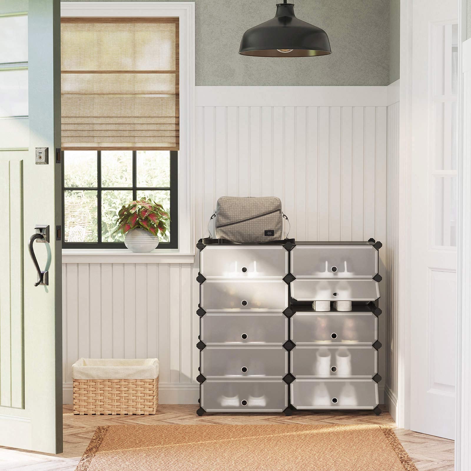• En skohylde med 10 rum, der giver masser af plads til at holde orden.