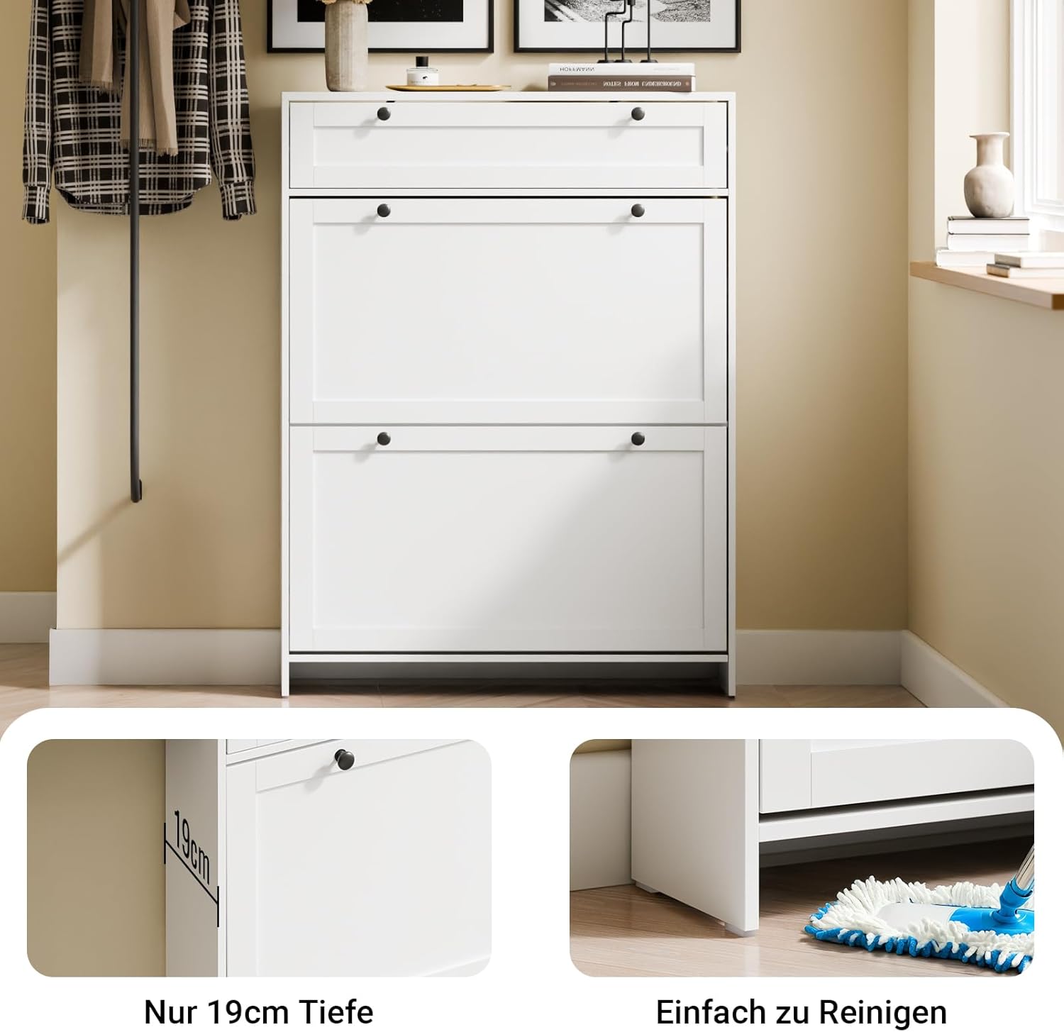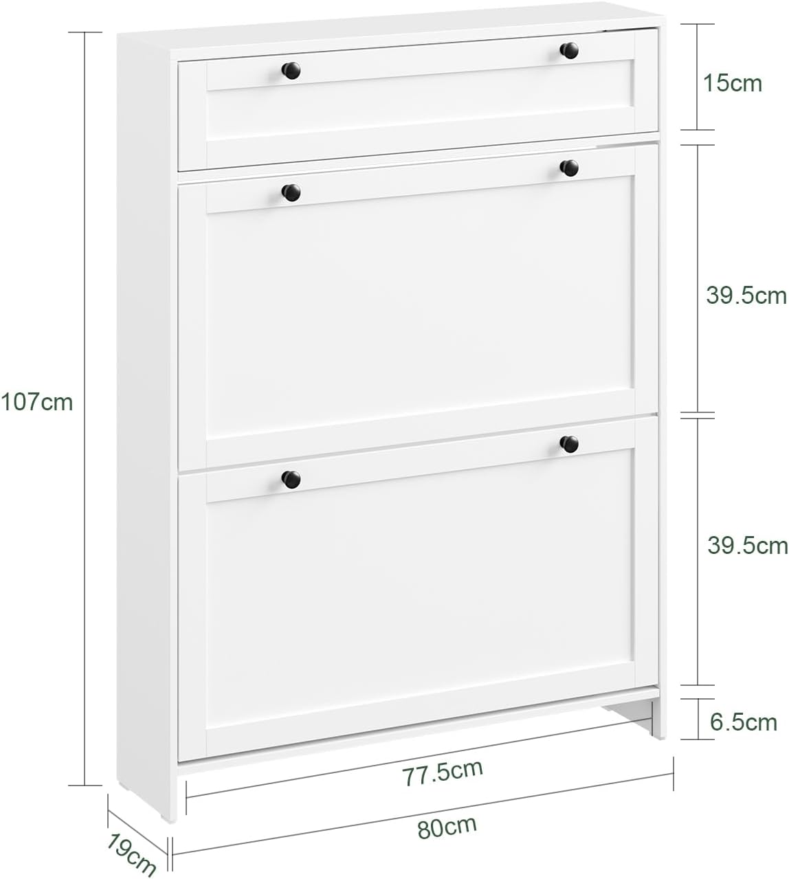 Dette smalle skoskab er perfekt til små lejligheder og smalle gangarealer. Med en dybde på kun 19 cm passer den ind i ethvert rum, hvor traditionelle skabe ikke passer ind.