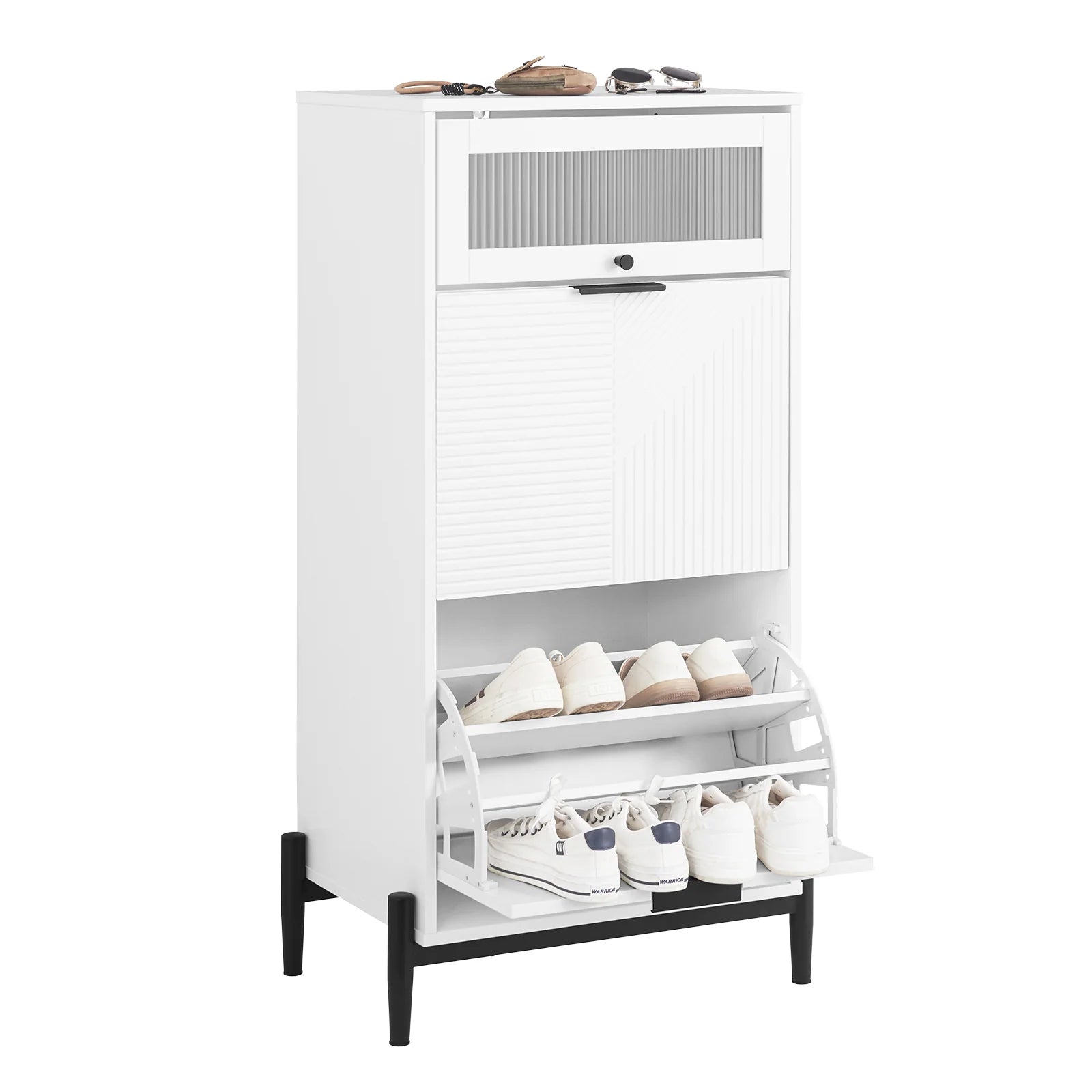 Gør din entré indbydende og organiseret med dette smukke og praktiske hvide skoskab – et møbel, der kombinerer elegance med funktionalitet.
