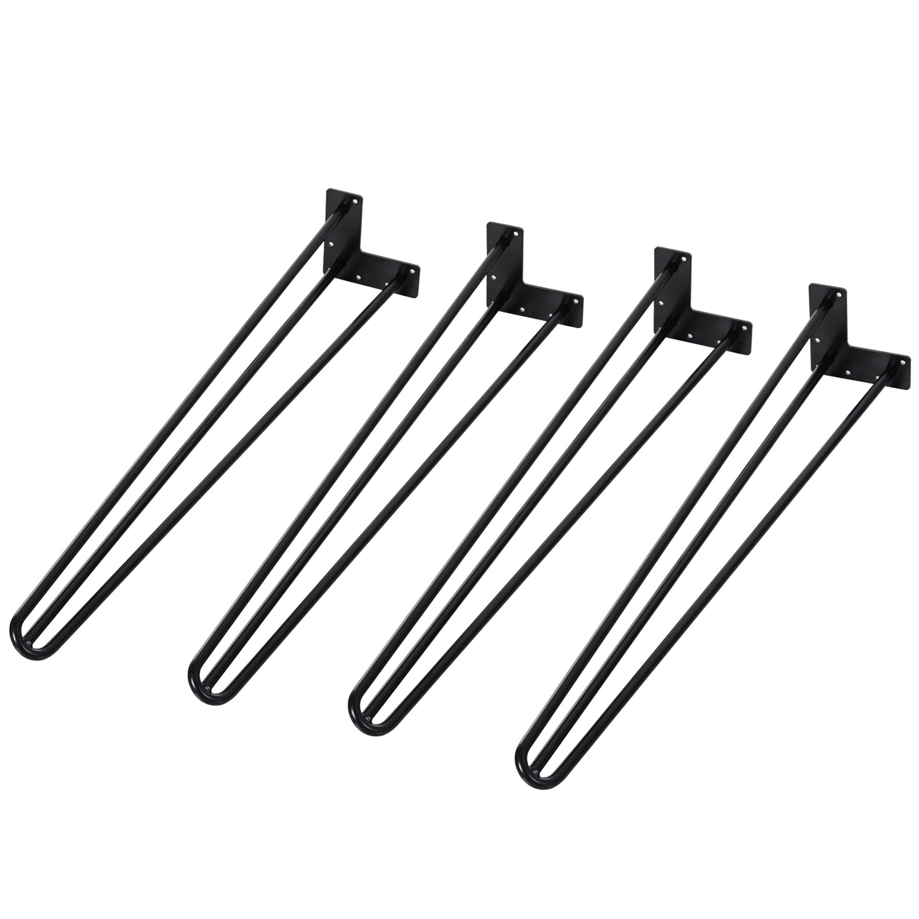 Skab unikke møbler med dette sæt af fire bordben i stål. Det gaffelformede design tilfører industriel charme til ethvert rum. Benene har gummipuder, der beskytter gulvet mod ridser, og med de forborede huller samt medfølgende skruer er installationen en leg.