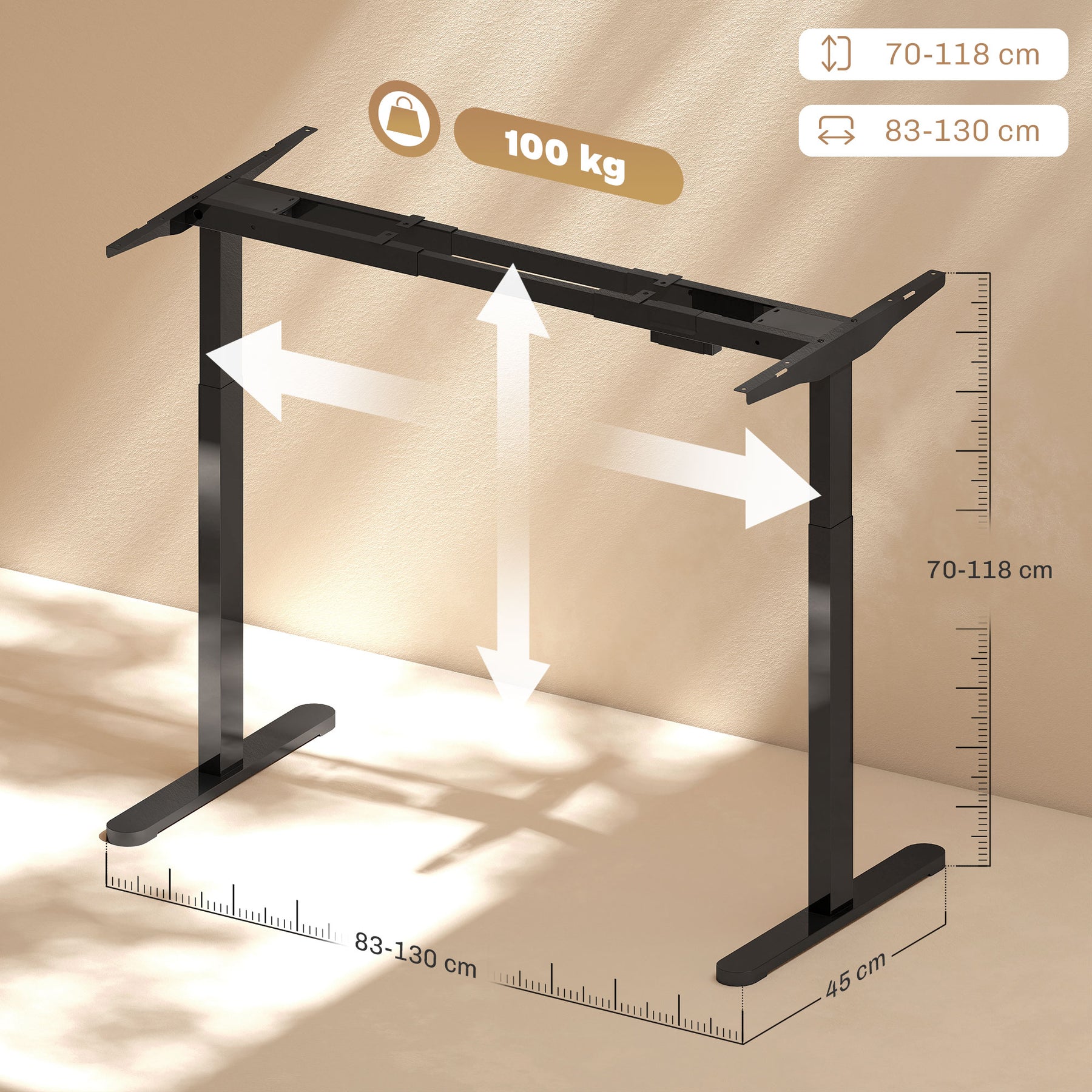Optimer din arbejdsplads med dette højdejusterbare skrivebordsstel! Juster nemt fra 70 cm til 118 cm i højden og 83 cm til 130 cm i bredden. Med de kraftfulde dobbeltmotorer kan du ændre indstillinger hurtigt og lydløst og drage fordel af tre praktiske hukommelsesfunktioner. Dette skrivebordsstel tilbyder støtte til din arbejdsdag med stil og funktionalitet.