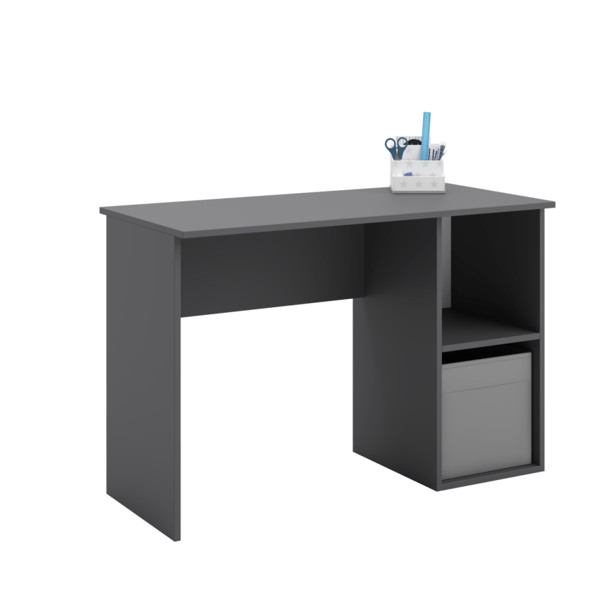 Skrivebordene er designet således stabilitet og holdbarhed er i højsædet. Her har flere af vores skriveborde til børn f.eks. melaminharpiksbelagt overflade, som danner en hård og bestandig overflade – hvad enten der er tale om ridser, vand, fedt eller varme op til 70 ° C.