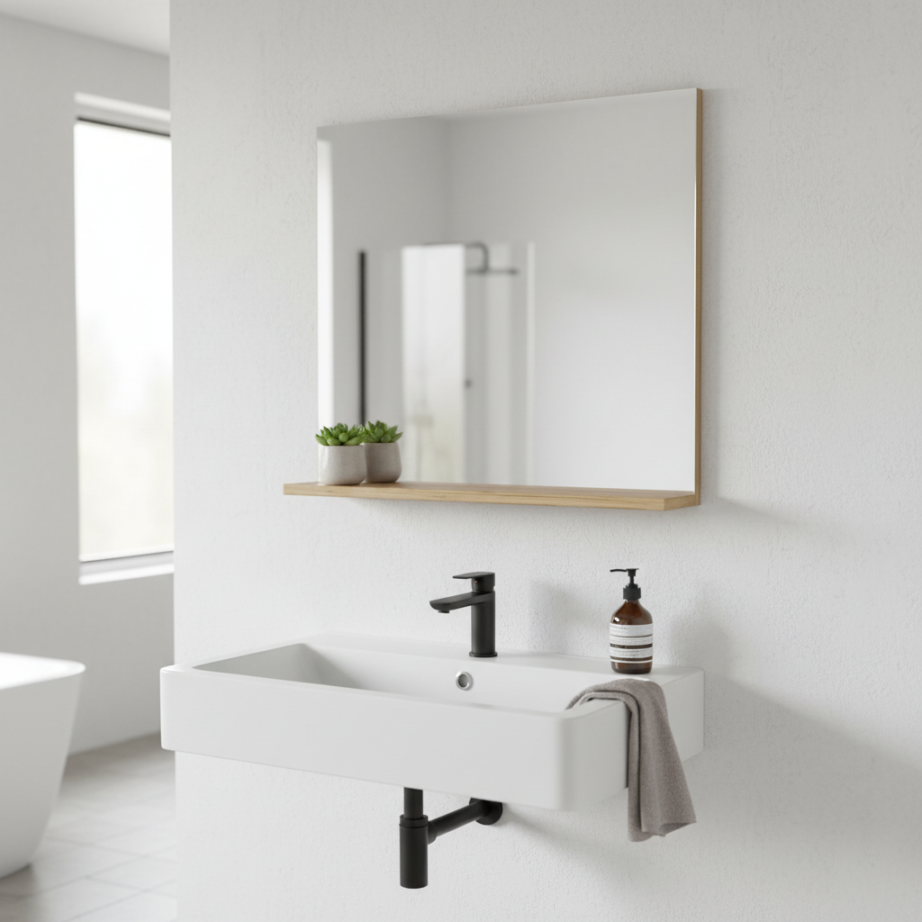 På grund af det tidløse og enkle design er spejlet "Landos" et smukt blikfang i ethvert badeværelse.