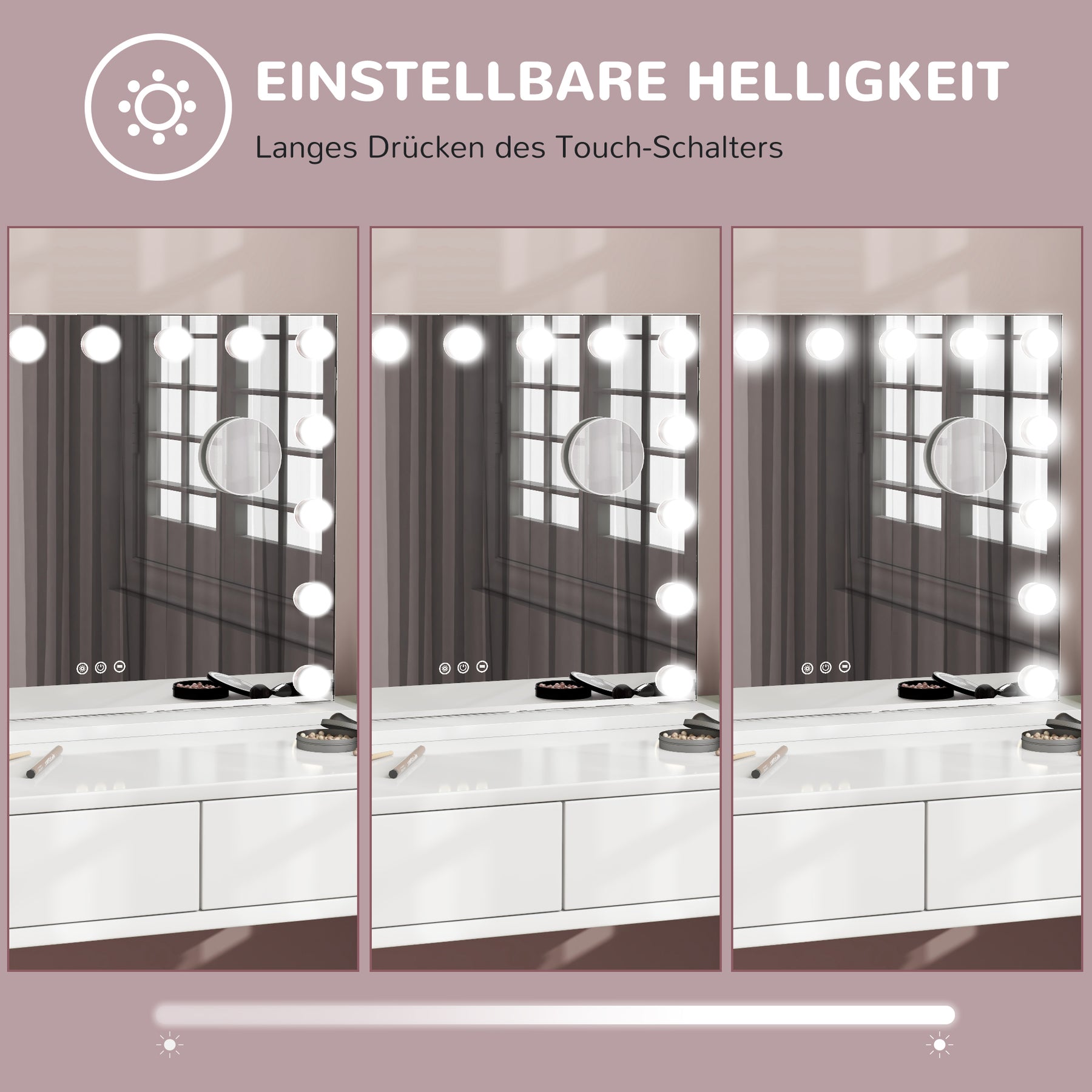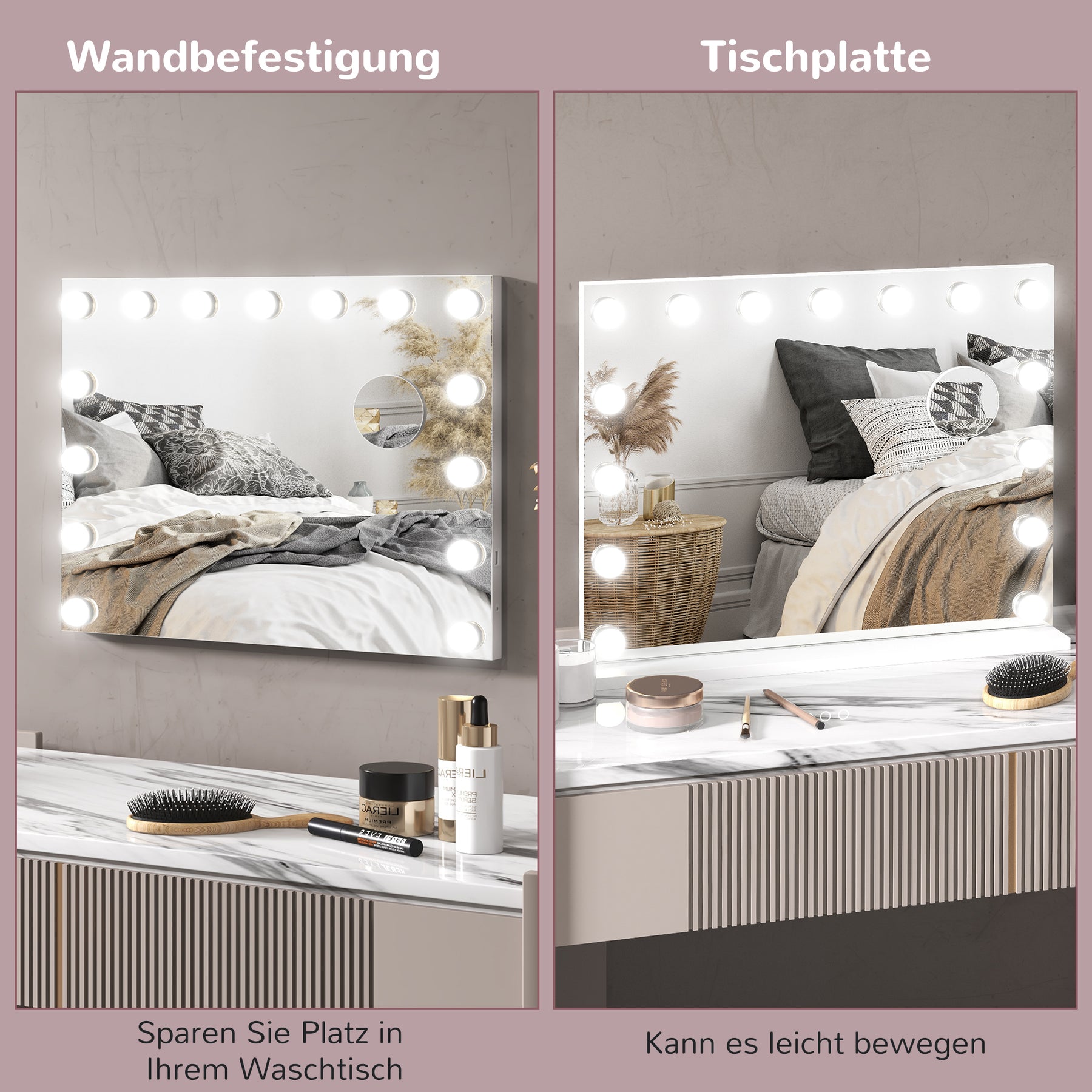 Oplev et nyt perspektiv på din hudplejerutine med dette LED-kosmetikspejl. Det er ideelt til enhver sminke og tilbyder perfekt belysning med 15 dæmpbare LED-pærer, der holder op til 50.000 timer. Bliv din egen makeup-influencer takket være tre justerbare lystilstande og variabel lysstyrke.