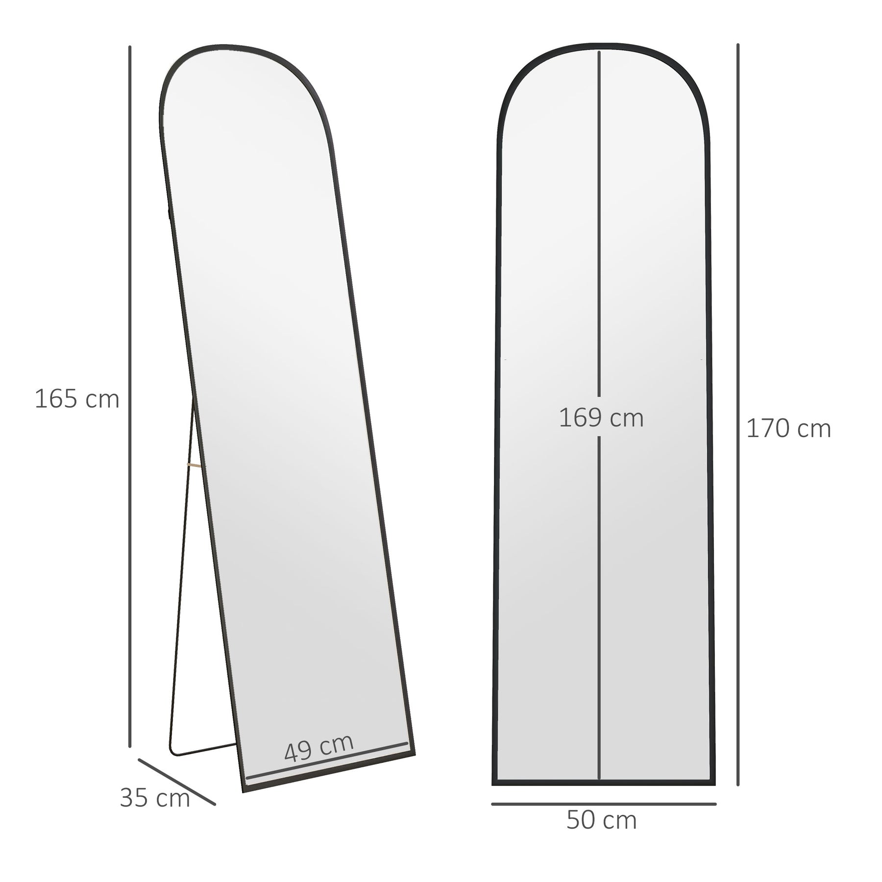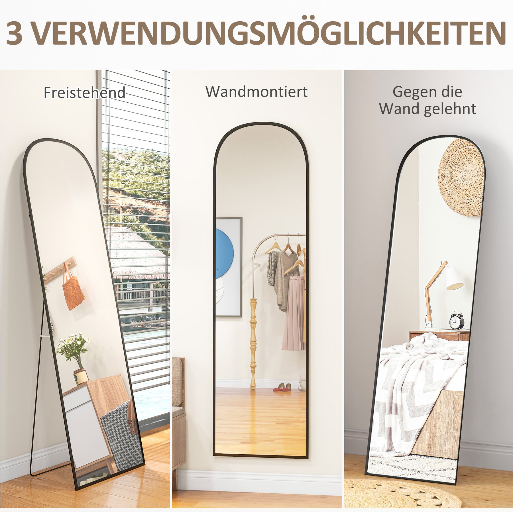 Oplev charmen ved dette spejl i fuld længde, der kombinerer funktionalitet og elegance. Med en rustfri og vandtæt aluminiumsramme forbedrer dette stående spejl ethvert rum. Det alsidige spejl kan monteres på væggen eller placeres frit, og dets buede form tilføjer et strejf af elegance til dit soveværelse.