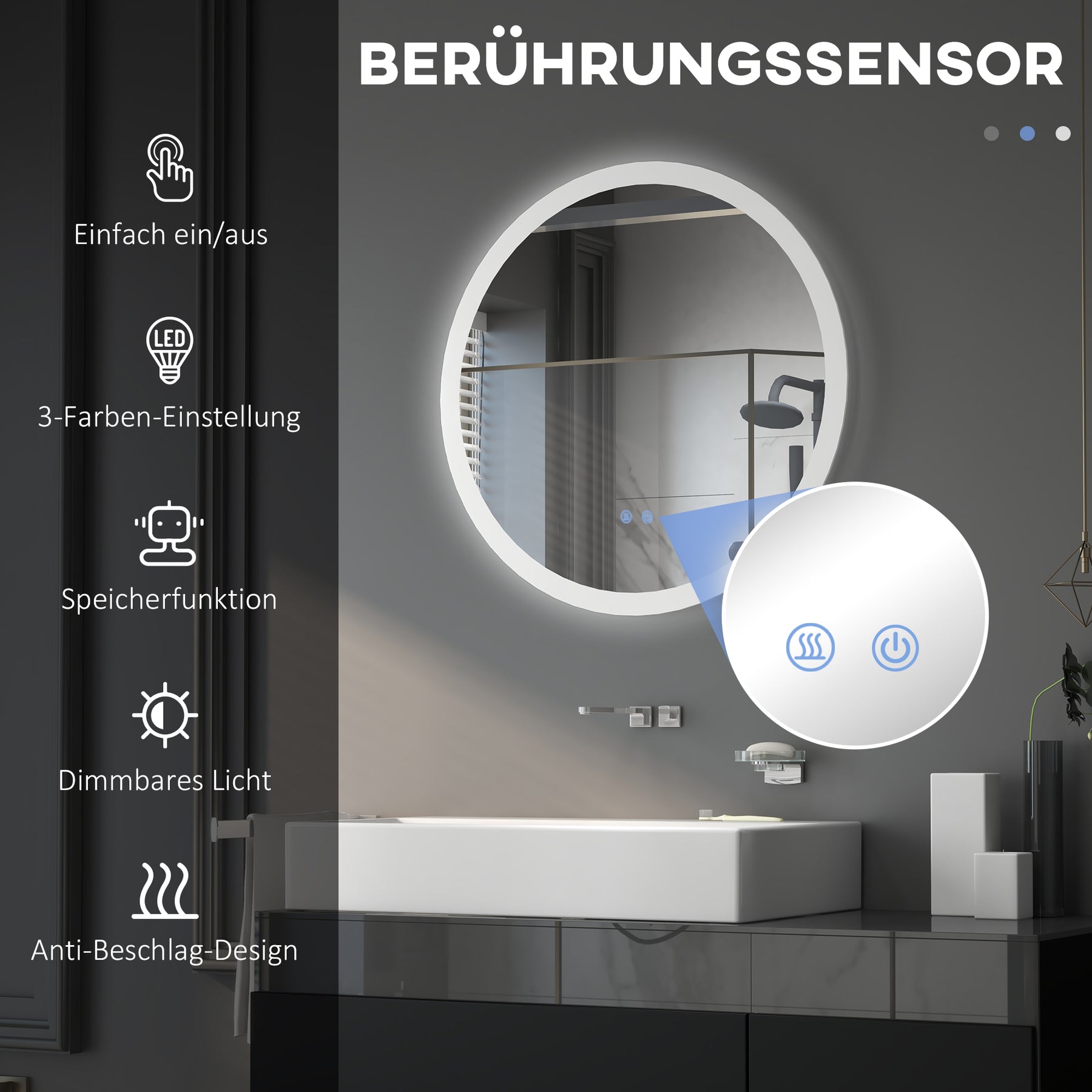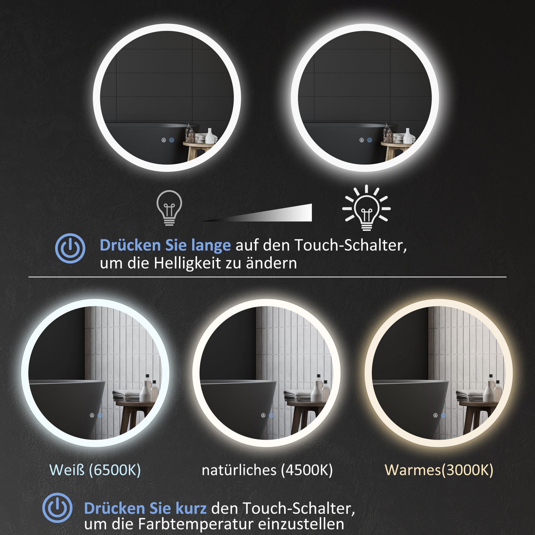 Tilføj et strejf af elegance til dit badeværelse med dette LED-badevægsspejl. Den klare LED-ring tilbyder valgfri belysning i varm hvid, hvid og kold hvid, perfekt tilpasning til ethvert tidspunkt af dagen. Den brugervenlige touch-knap og praktiske hukommelsesfunktion gør det til den ideelle ledsager til din daglige rutine.