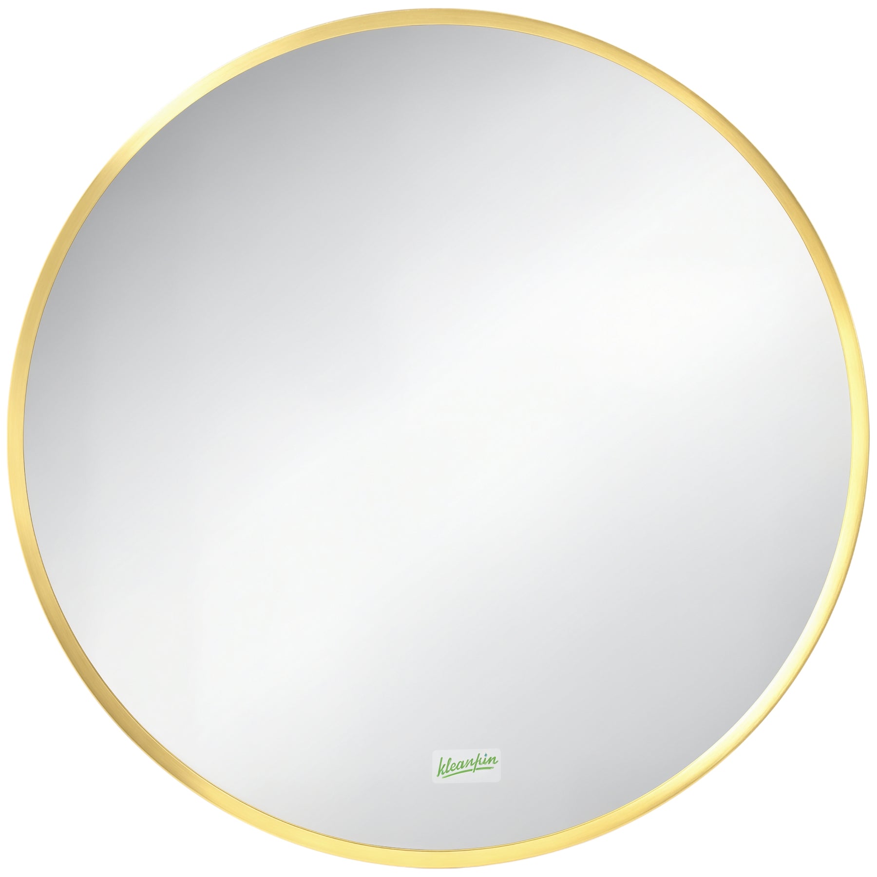 Kleankin rundt vægspejl til badeværelse, soveværelse, entré, metalramme, farve: guld, ø50 cm