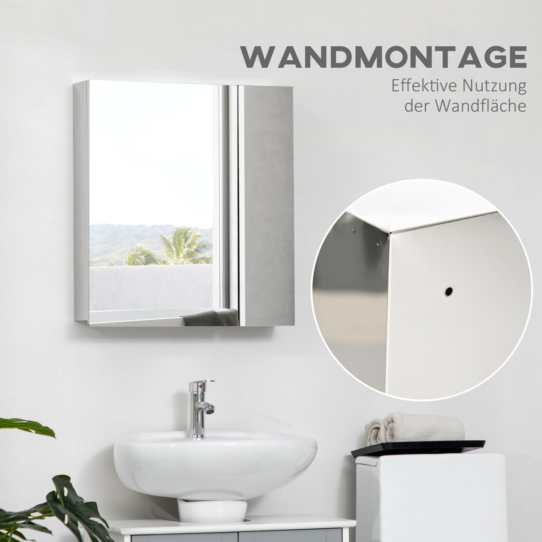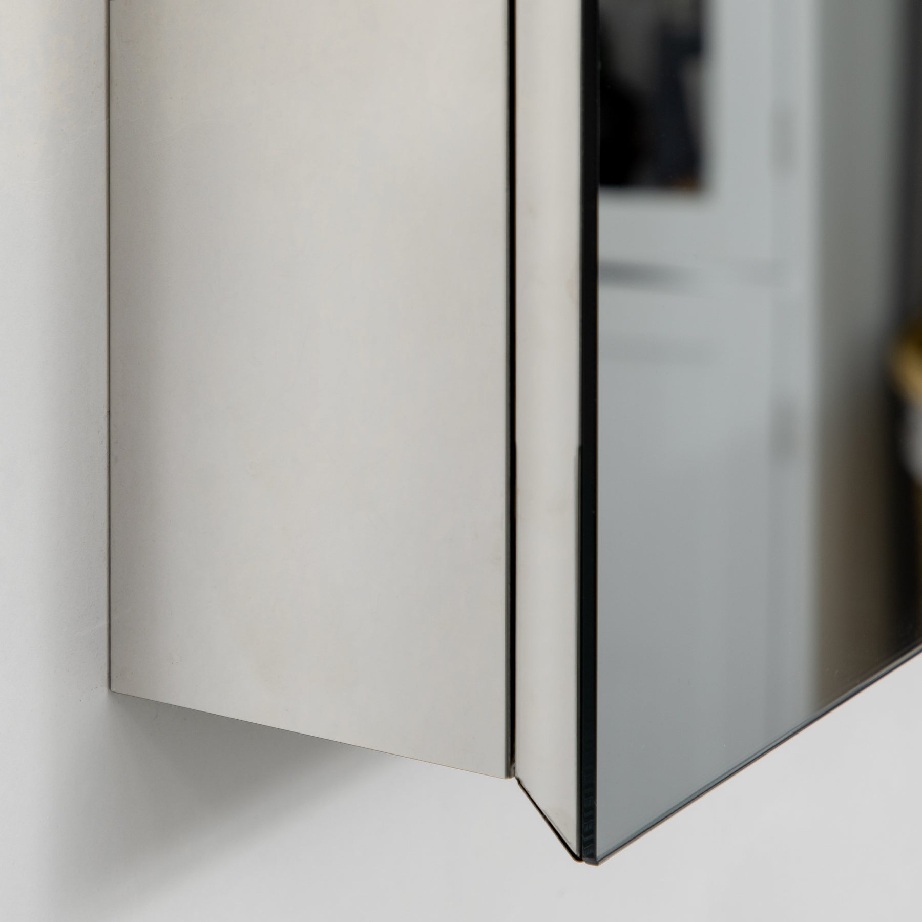 Dette vidunderlige, moderne spejlskab til badeværelset giver dig mulighed for pænt at opbevare alle dine badeværelsesartikler. Tre hylder giver plads til ansigtscreme, makeup eller andre daglige hygiejneprodukter. Det vægmonterede design kræver ingen ekstra gulvplads, så du kan friske dig op komfortabelt på badeværelset når som helst.