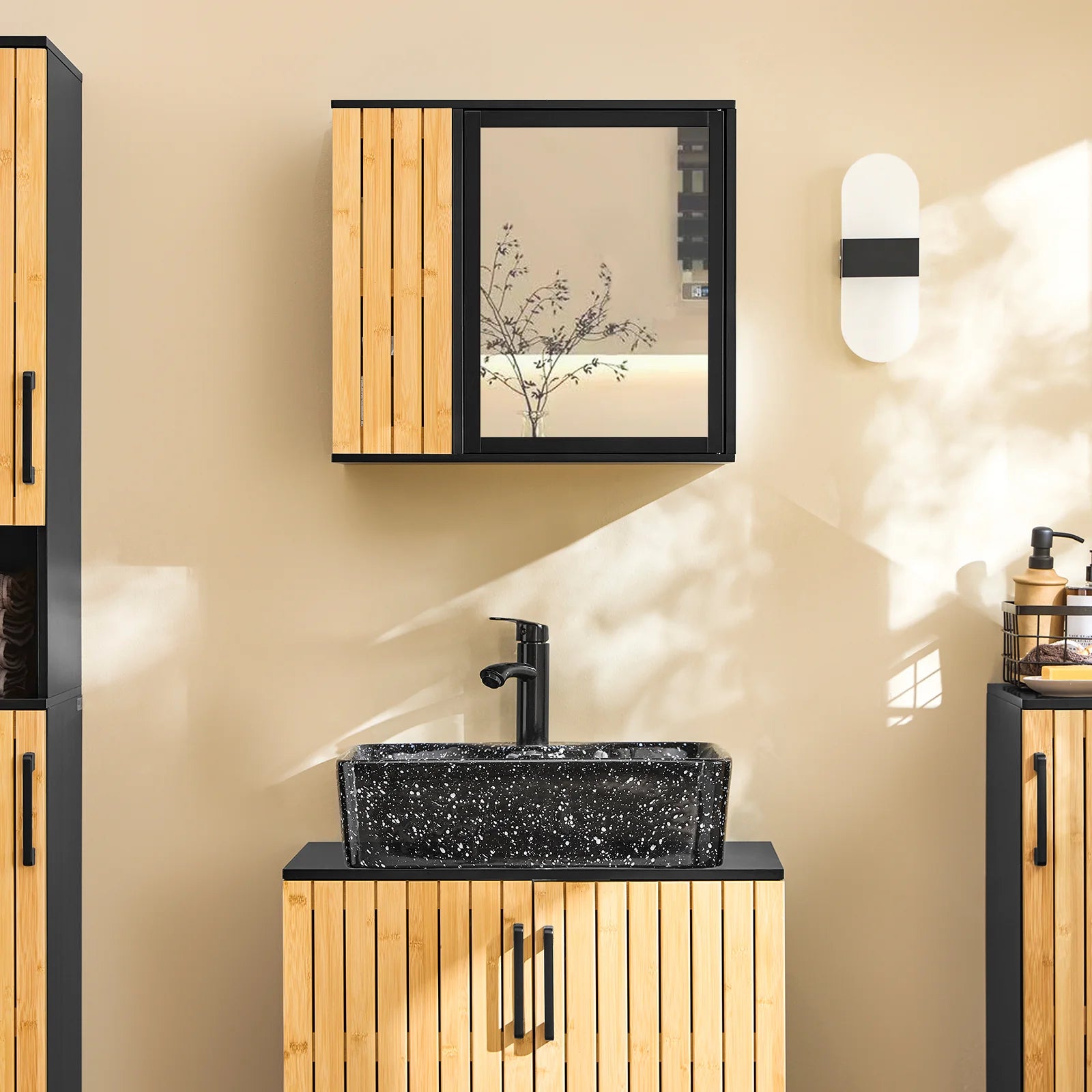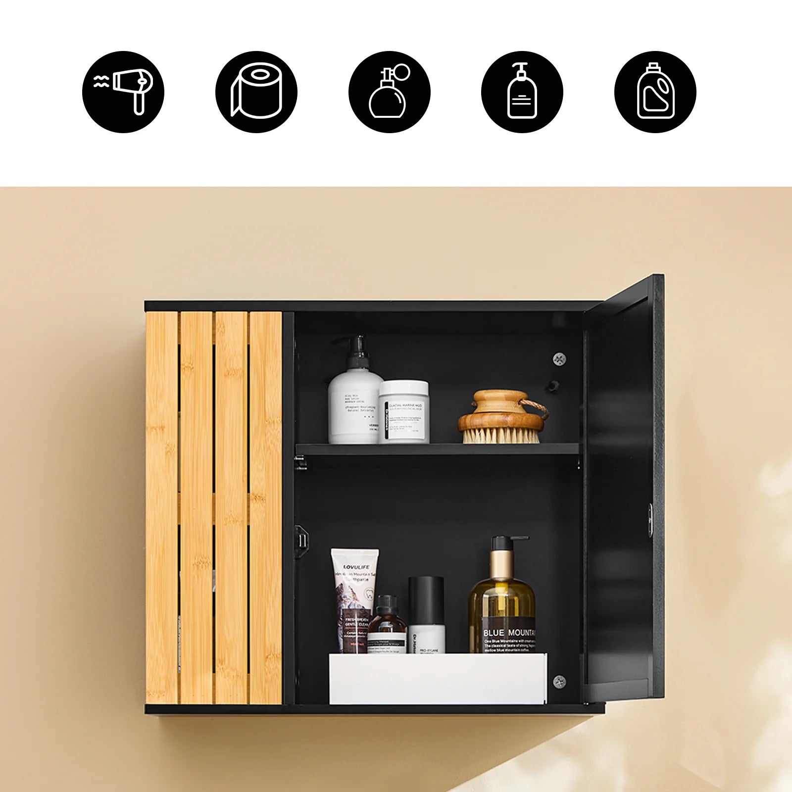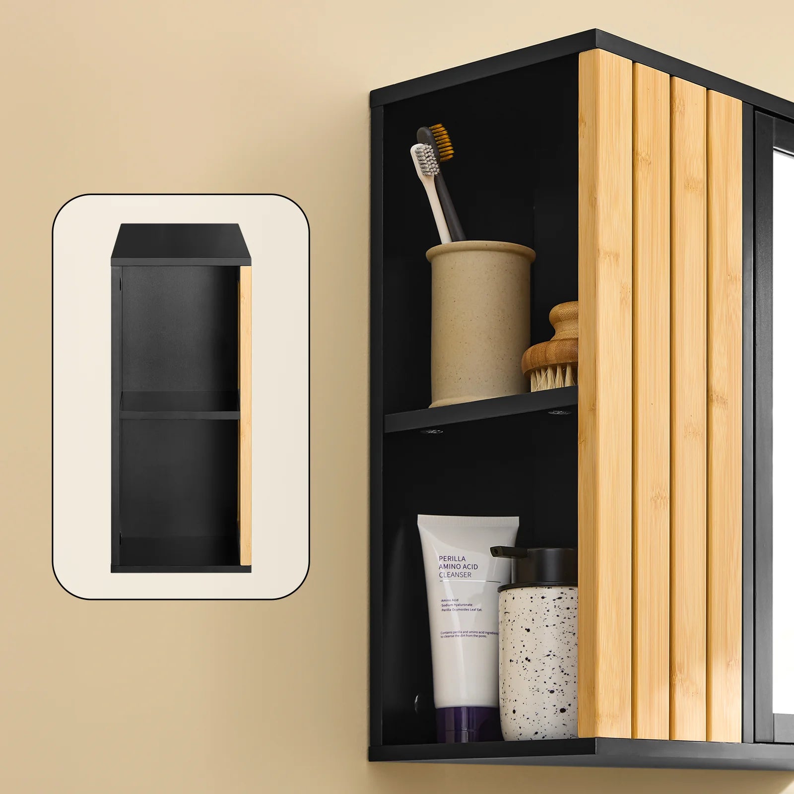 • Moderne og stilfuldt design: Den elegante kombination af sort og bambus giver skabet et stilfuldt og minimalistisk udtryk, der passer ind i ethvert moderne hjem. Det er perfekt til både badeværelset, køkkenet eller gæstetoilettet.