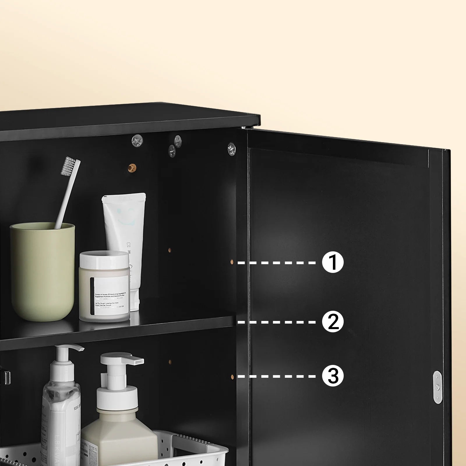 • Fleksibel opbevaring: Med en justerbar hylde og et åbent rum kan du nemt tilpasse opbevaringen til dine behov. Det er perfekt til at opbevare toiletsager, håndklæder, køkkenredskaber eller rengøringsartikler.
