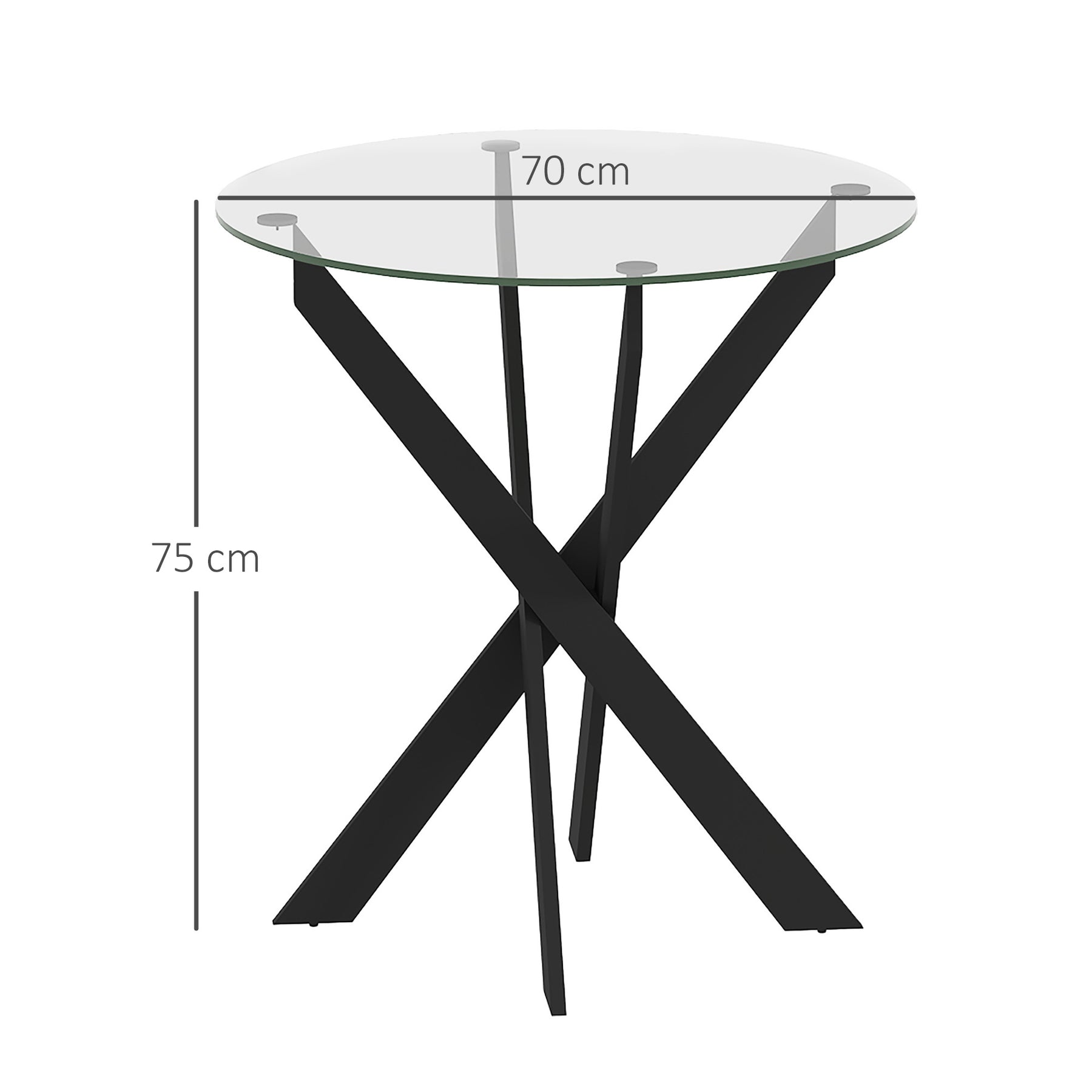 Moderne glas spisebord, 70 cm diameter, køkkenbord med hærdet glasplade og metalben, til 4 personer