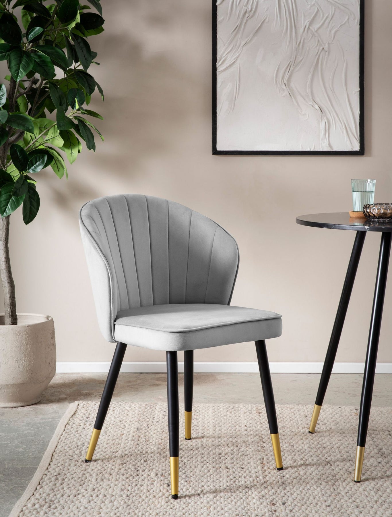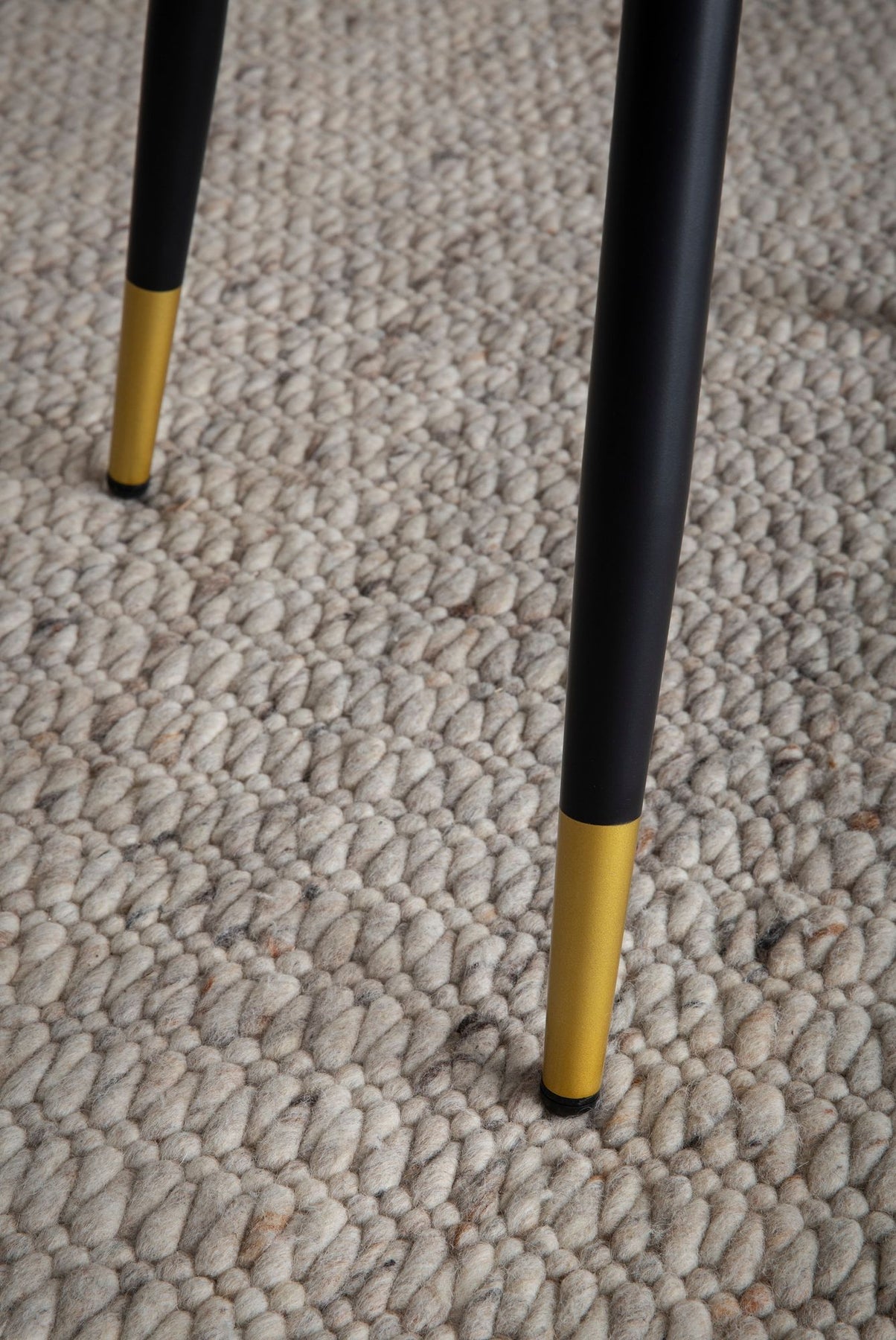 Fire robuste ben i kontrast til det bløde fløjlsbetræk