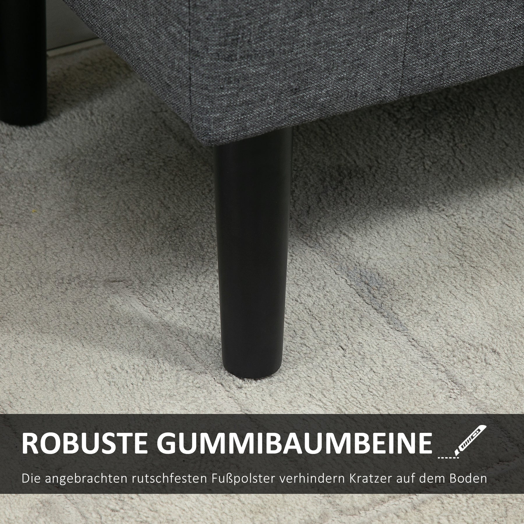 Bænk med opbevaringsplads, polstret bænk med linnedlook, træben, sengebænk, bæreevne op til 130 kg, til stue, soveværelse, entre, 116 x 44 x 58 cm mørkegrå