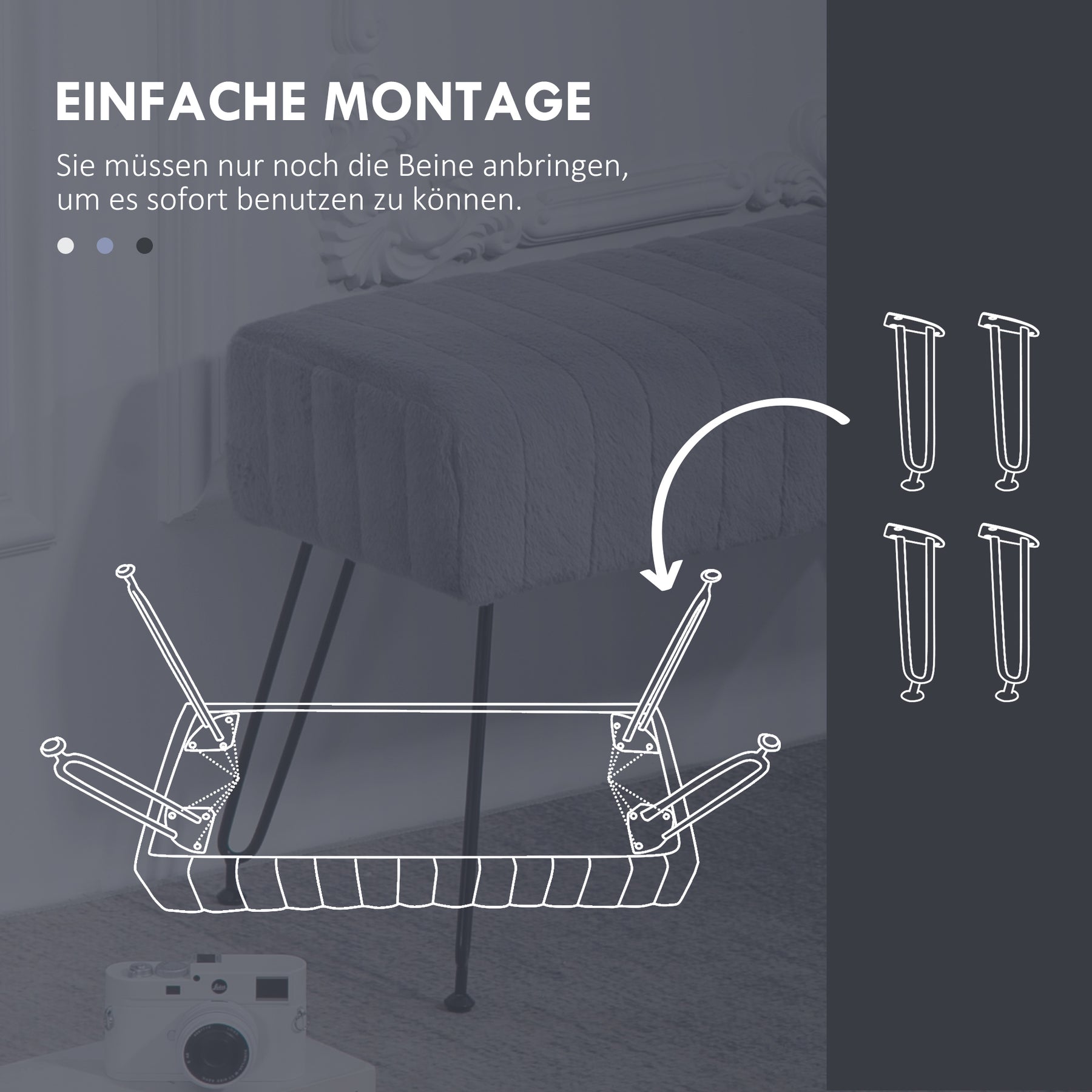 Oplev den perfekte kombination af elegant design og suveræn komfort med denne bænk. Det brede sæde på 82 cm er betrukket med kunstpels og generøst polstret for en uovertruffen siddeoplevelse. Med slanke, robuste metalben tilføjer denne bænk et strejf af stil og elegance til ethvert rum i dit hjem.