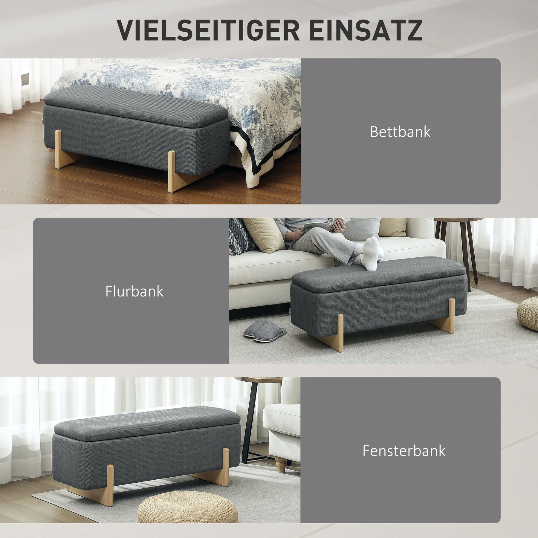 Tilføj et strejf af elegance og funktionalitet til dit hjem med denne stilfulde opbevaringsbænk. Den tilbyder ikke kun ekstra siddepladser, men også praktisk opbevaringsplads under sædet. Ideel til tæpper, håndklæder eller andre ting, du ønsker at opbevare pænt.