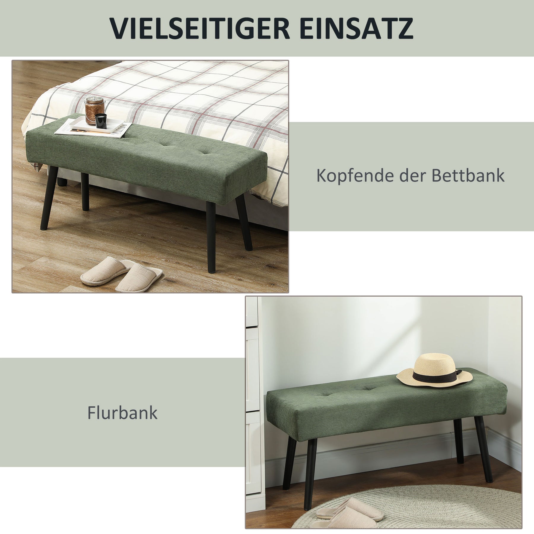 Polstret bænk med snorbetræk, sengebænk med metalben, skobænk 100 x 36 x 45 cm grøn