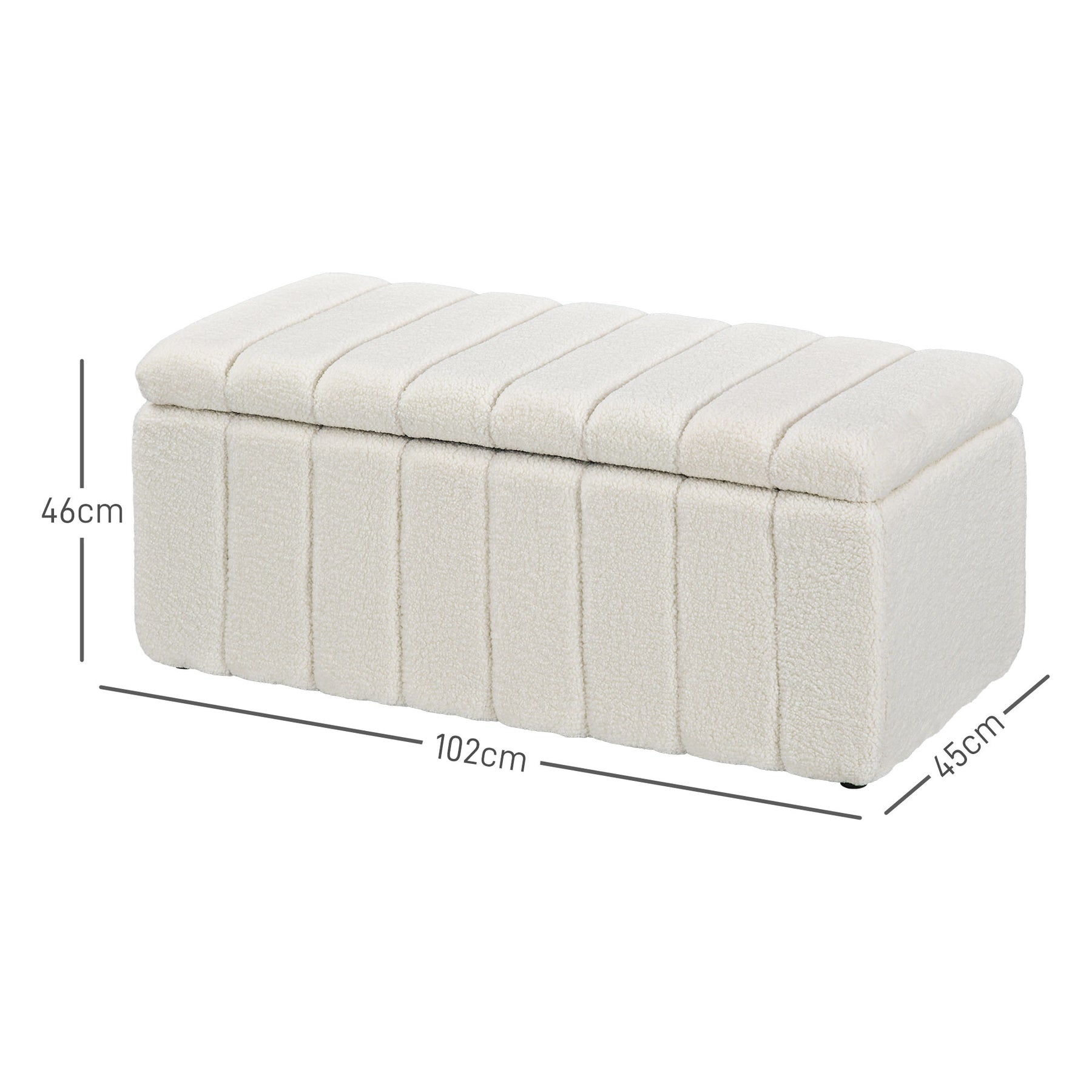 Polstret bænk, sengebænk med opbevaring, lasteevne op til 120 kg, 102x45x46 cm, cremehvid