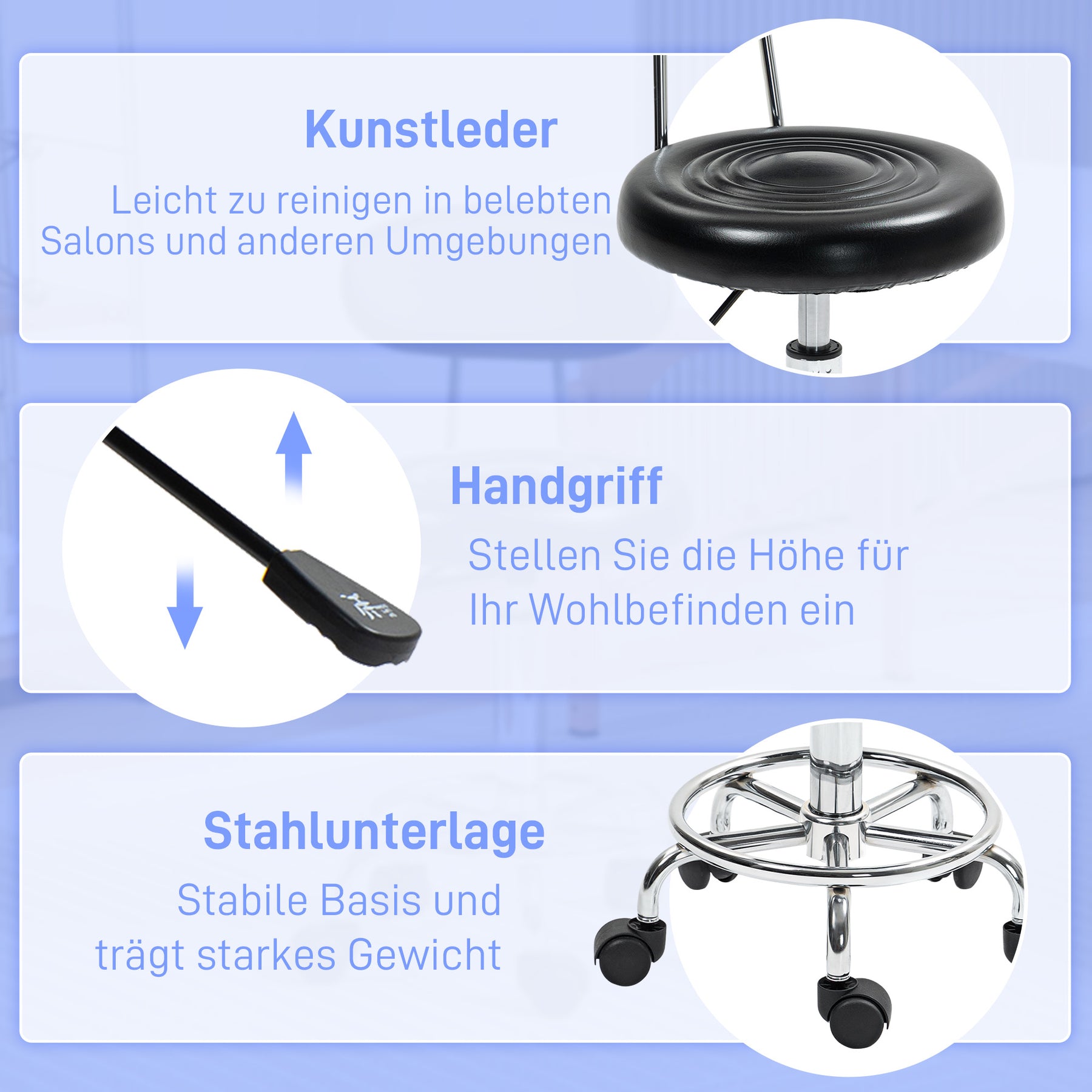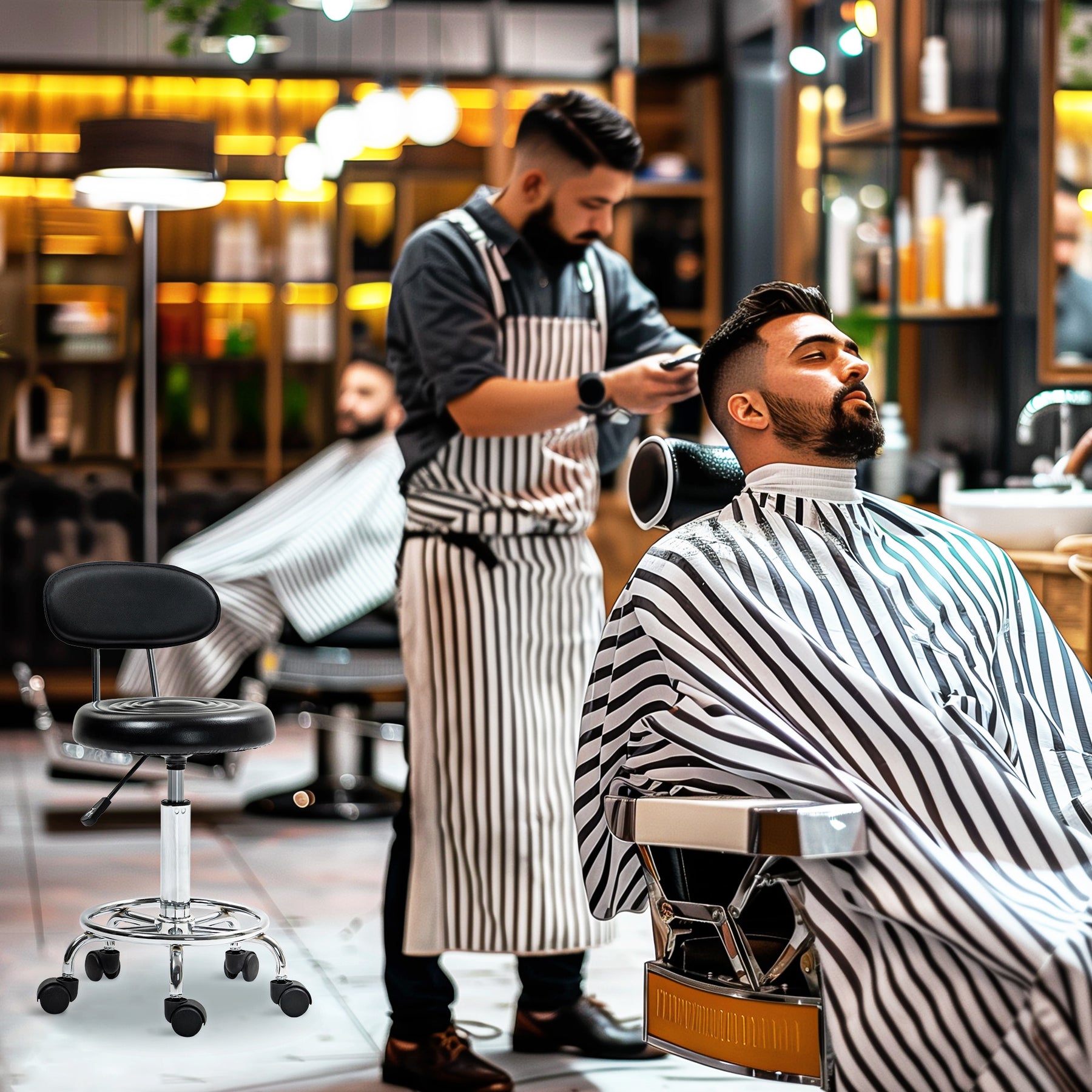 Opdag den perfekte rullestol til dit hjem! Med sit skumpolstrede sæde og ryglæn tilbyder denne stol komfort hele dagen. Den 360-graders drejelige funktion og de letglidende hjul gør den nem at manøvrere, hvilket gør den ideel som toiletbordsstol eller frisørstol.