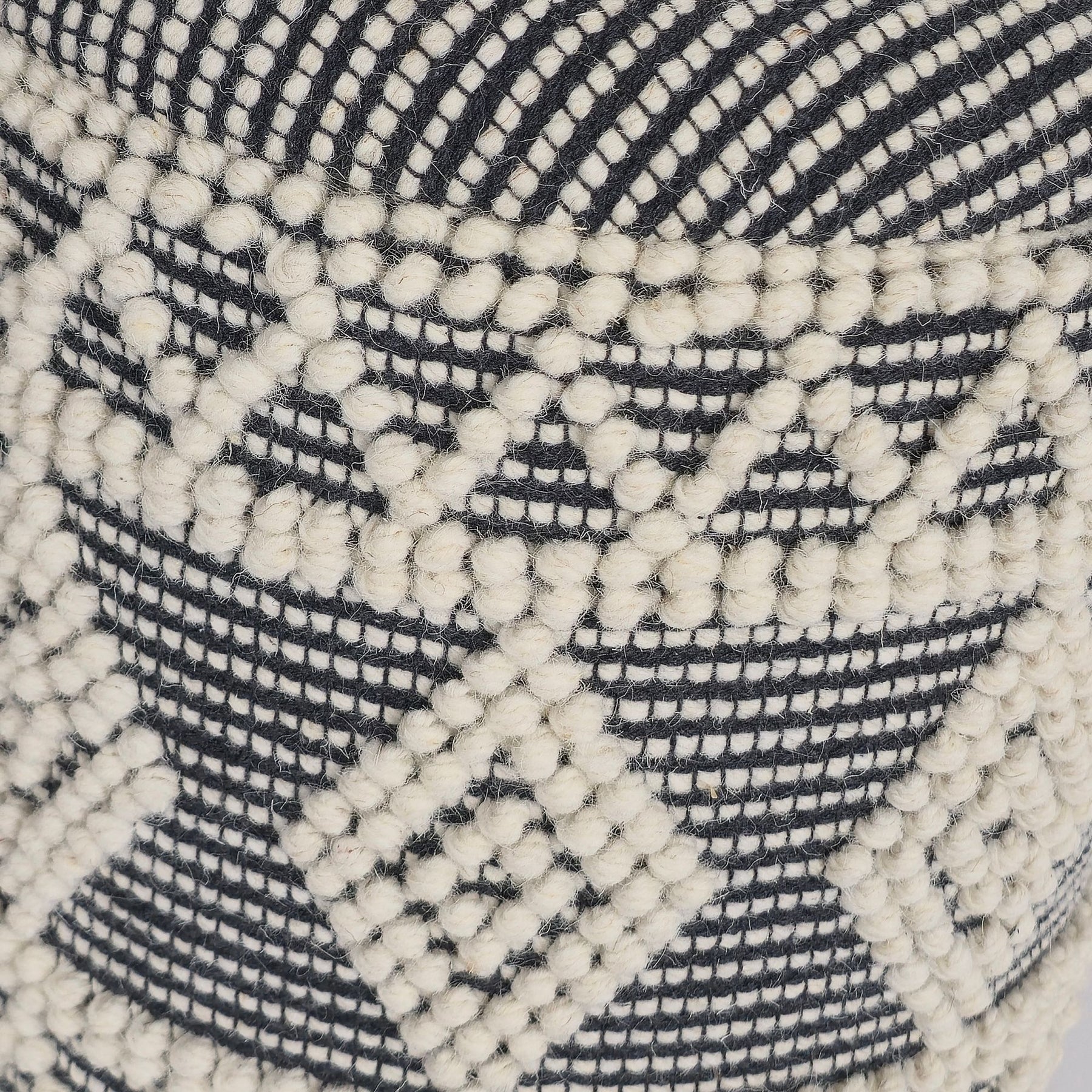 Uldpuf Ø 40 x 45 cm, grå-creme, rund Boho skammel med opbevaring & aftageligt låg