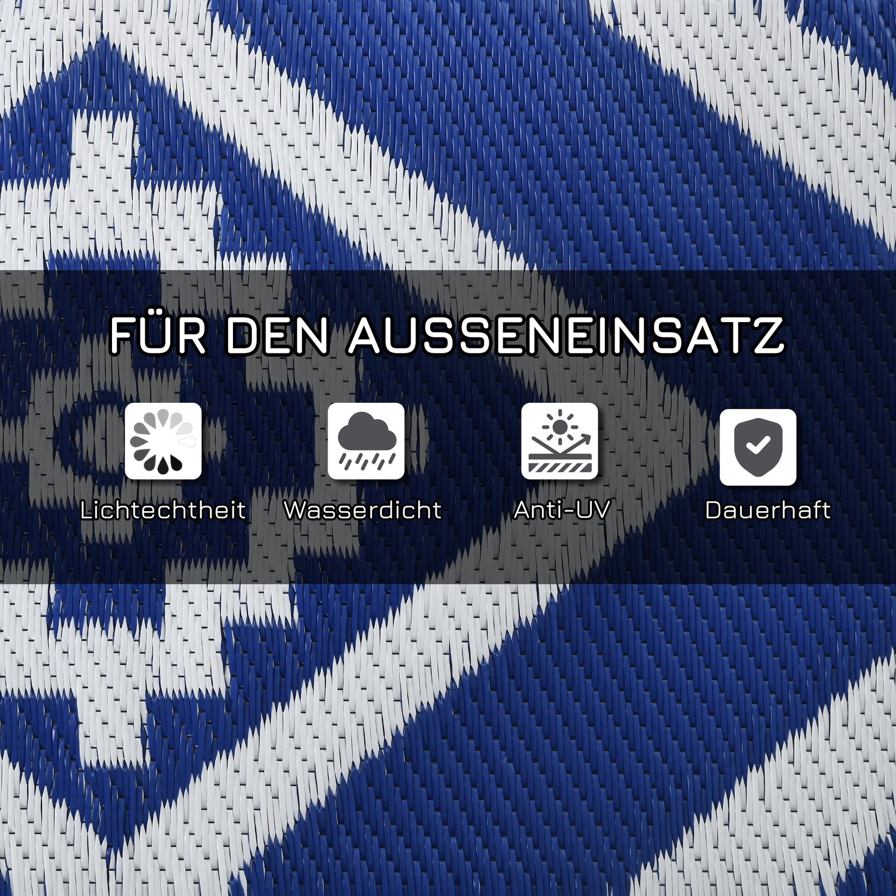 Dette vandtætte udendørstæppe er ideelt til alle udendørs aktiviteter, uanset om du skal på camping, til picnic, festivaler eller bare slappe af i haven. Rul det ud og nyd det! Det rivefaste og vandafvisende materiale sikrer holdbarhed, mens det vendbare design giver dig mulighed for at bruge det dobbelt så længe.