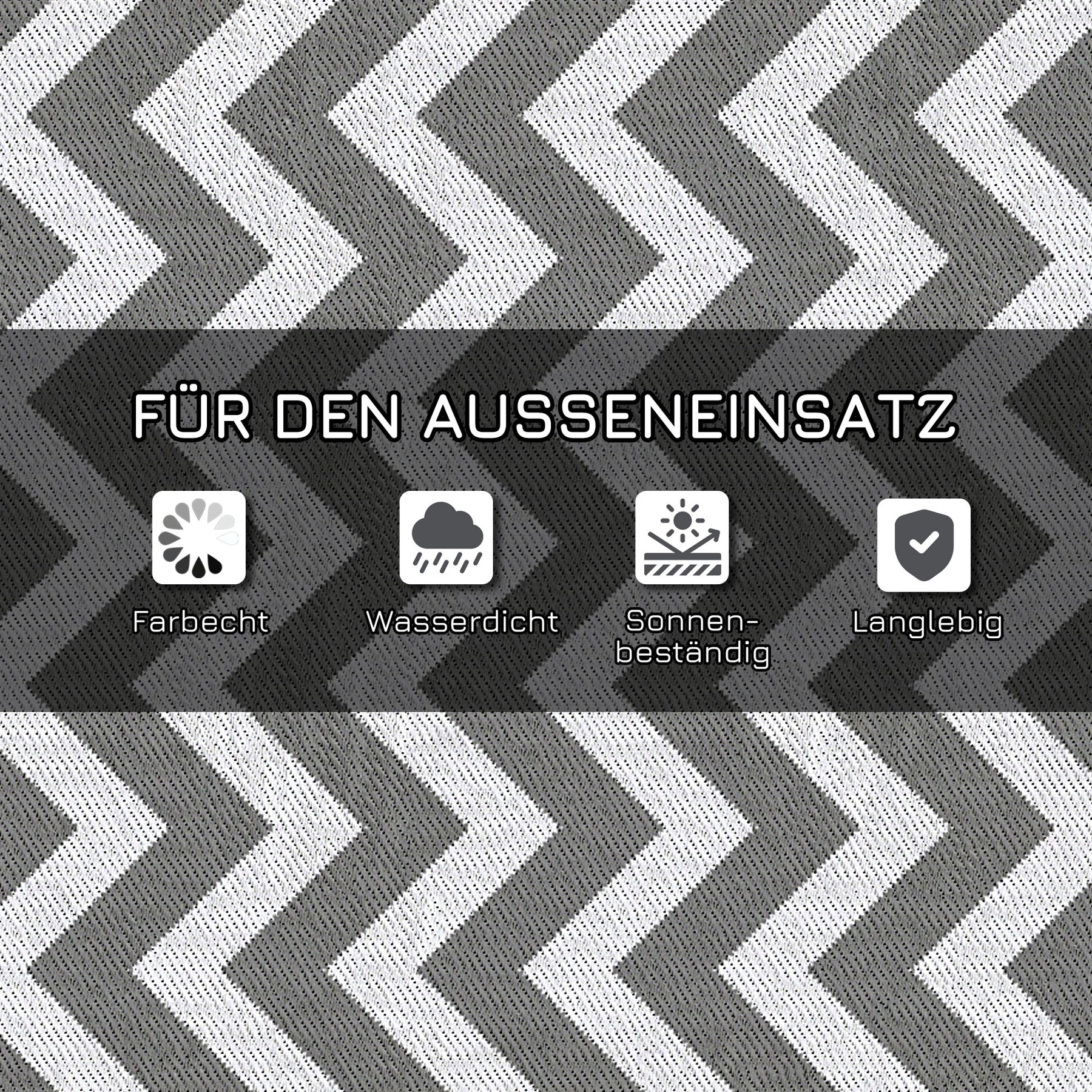 Giv din terrasse et unikt præg med dette sofistikerede, dobbeltsidede udendørstæppe. Det er ikke kun dekorativt og ekstremt holdbart, men også modstandsdygtigt over for vand og sollys. Tæppet passer perfekt i et mobilhome, et lysthus eller en vinterhave, og opfrisker atmosfæren på en stilfuld måde. Hvis du ønsker fornyelse, kan du blot vende tæppet om for at nyde et andet farveskema.