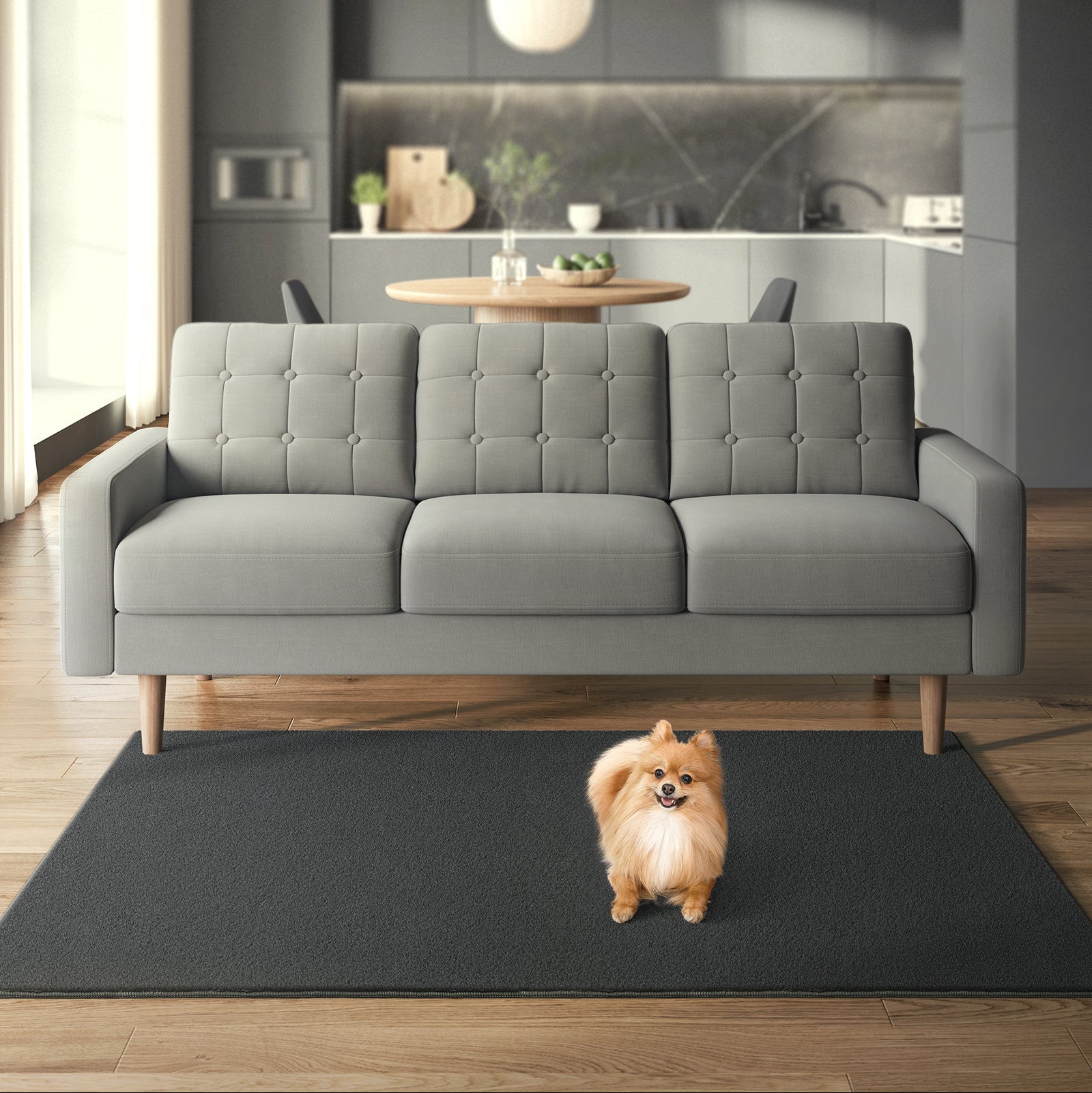 Den fine koksgrå farve giver tæppet et enkelt, men raffineret udseende, der passer perfekt ind i ethvert rum. Uanset om det er soveværelse eller stue, skaber det en rolig og harmonisk atmosfære.