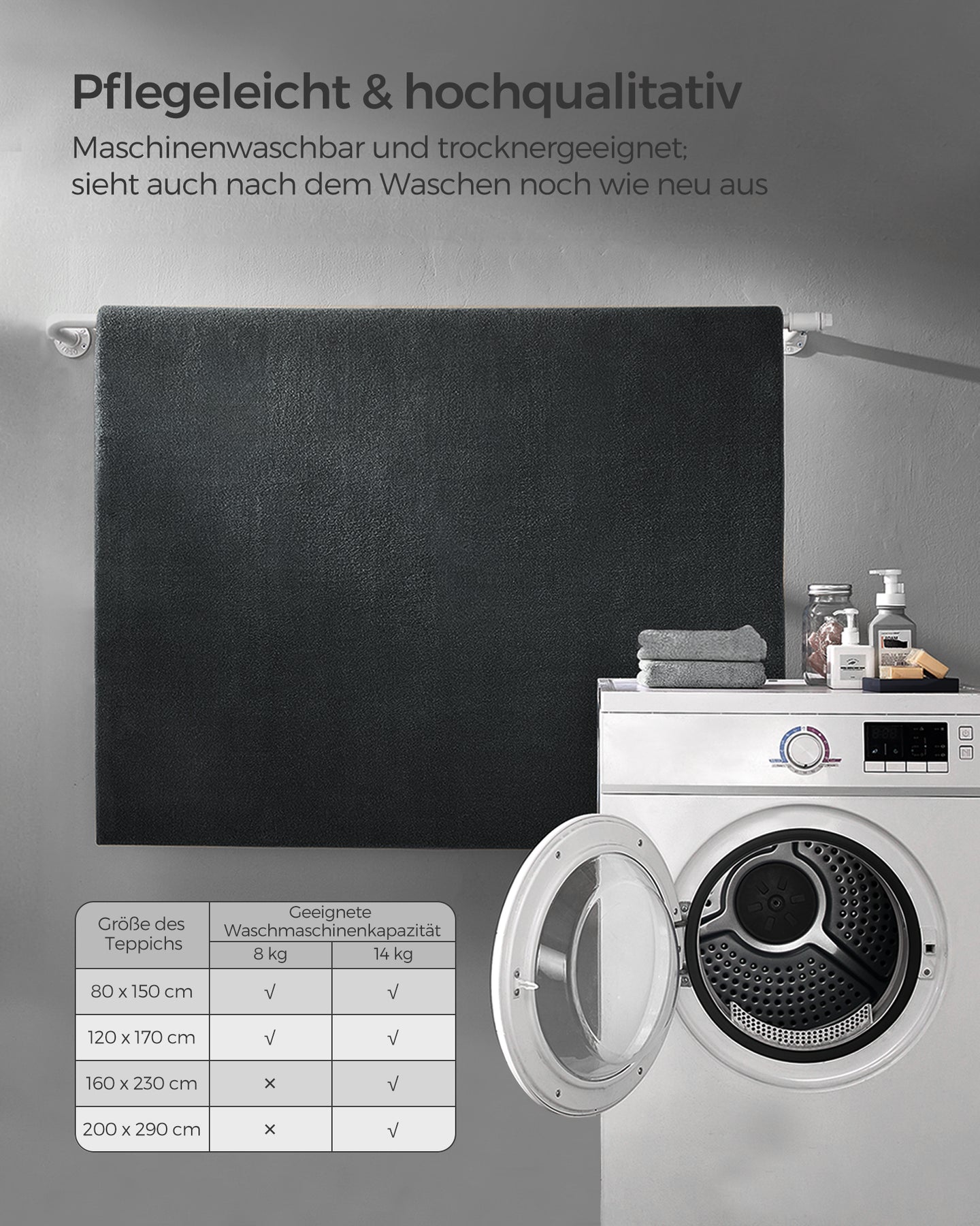 Tæppet er designet til at holde i lang tid og bevarer sin bløde tekstur selv efter intensiv brug uden at fælde. Det tåler gentagne maskinvaske uden at tabe sin kvalitet.