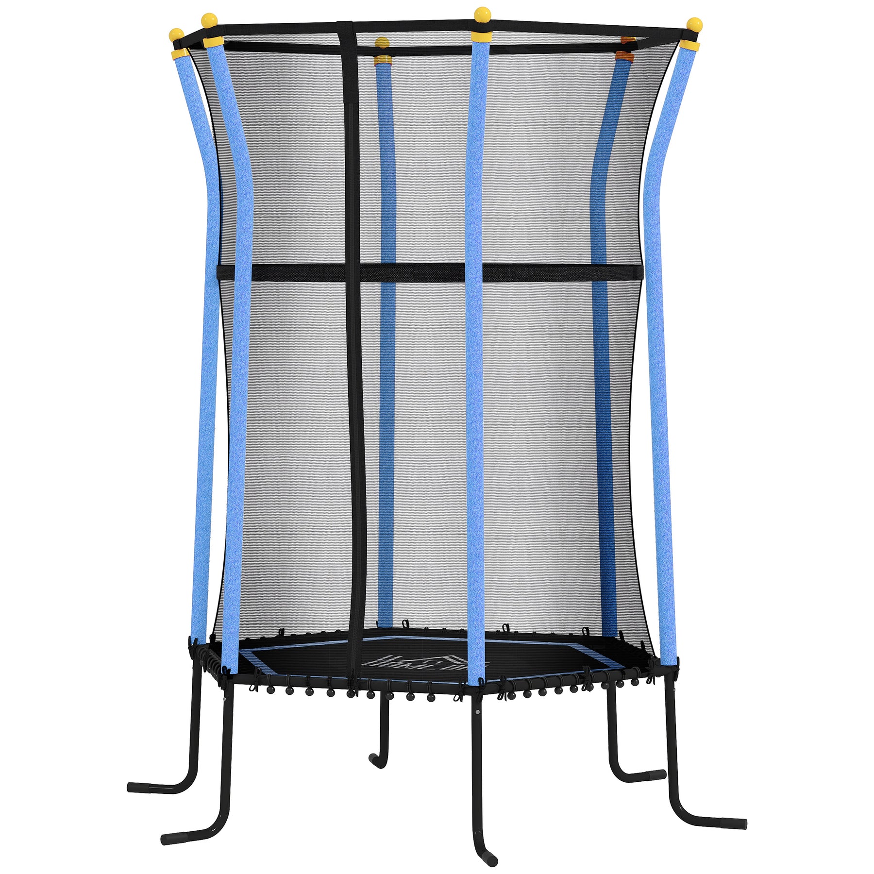 Sikker sjov! Denne børnetrampolin opfylder de højeste sikkerhedsstandarder og garanterer ren hoppesjov! Sikkerhedsnettet af høj kvalitet, de polstrede stolper og kantbeklædningen minimerer risikoen for skader. Gennemgangen i sikkerhedsnettet er udstyret med en praktisk lynlås. Dine børn kan have det sjovt med at træne deres balance og koordinationssans.