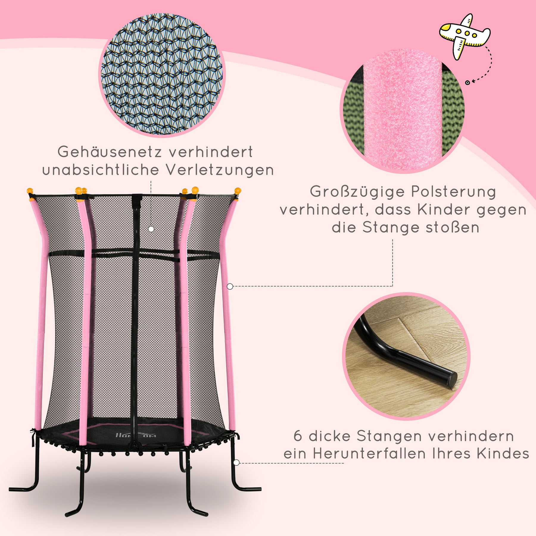 Trampolin til børn, 163,5 cm, med sikkerhedsnet, polstret, stål, lasteevne op til 50 kg
