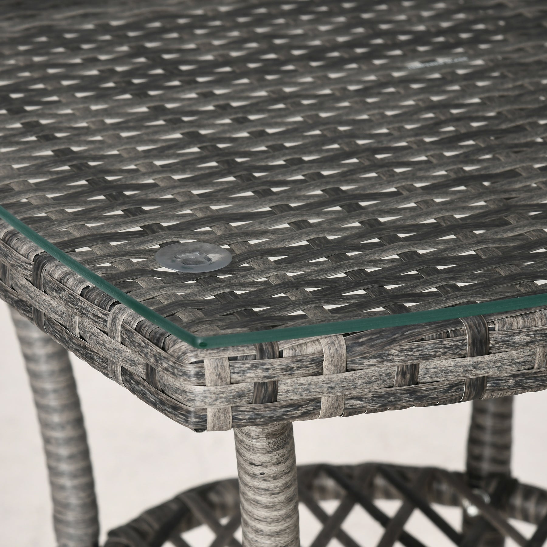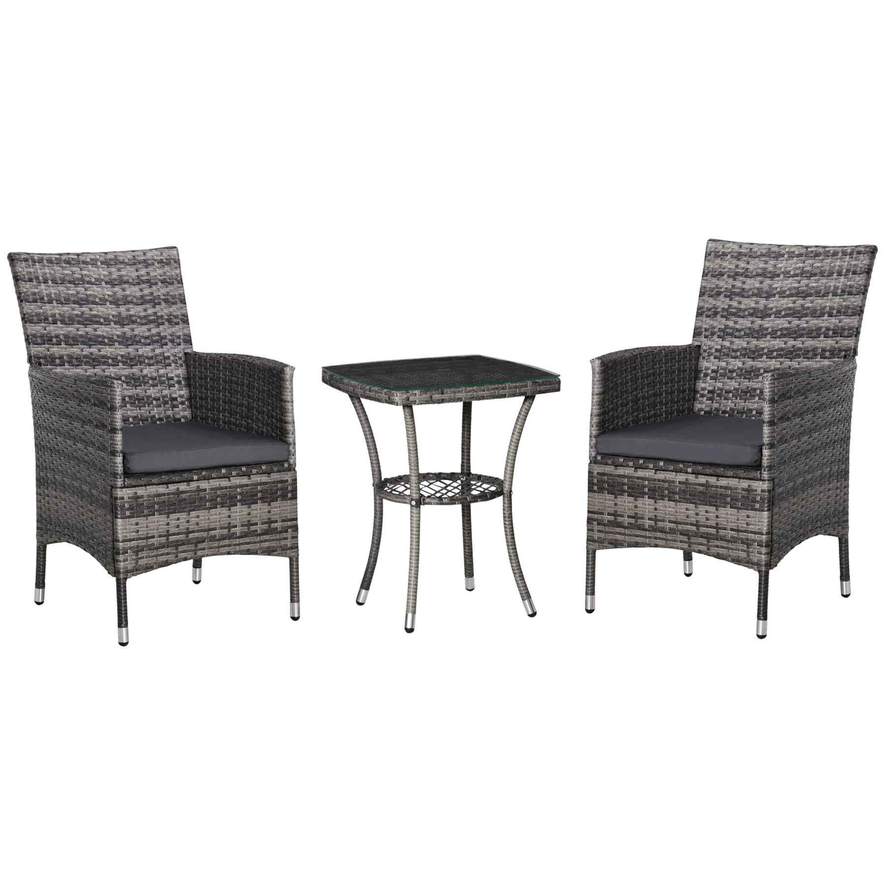 Med dette altanmøblesæt til to personer kan du bringe stil og komfort til din terrasse eller altan. Sættet har et rattan-look og inkluderer to stole samt et bord med en hærdet glasplade. De tykke hynder med vaskbare betræk sikrer en behagelig oplevelse, perfekt til en kop kaffe eller et glas vin.