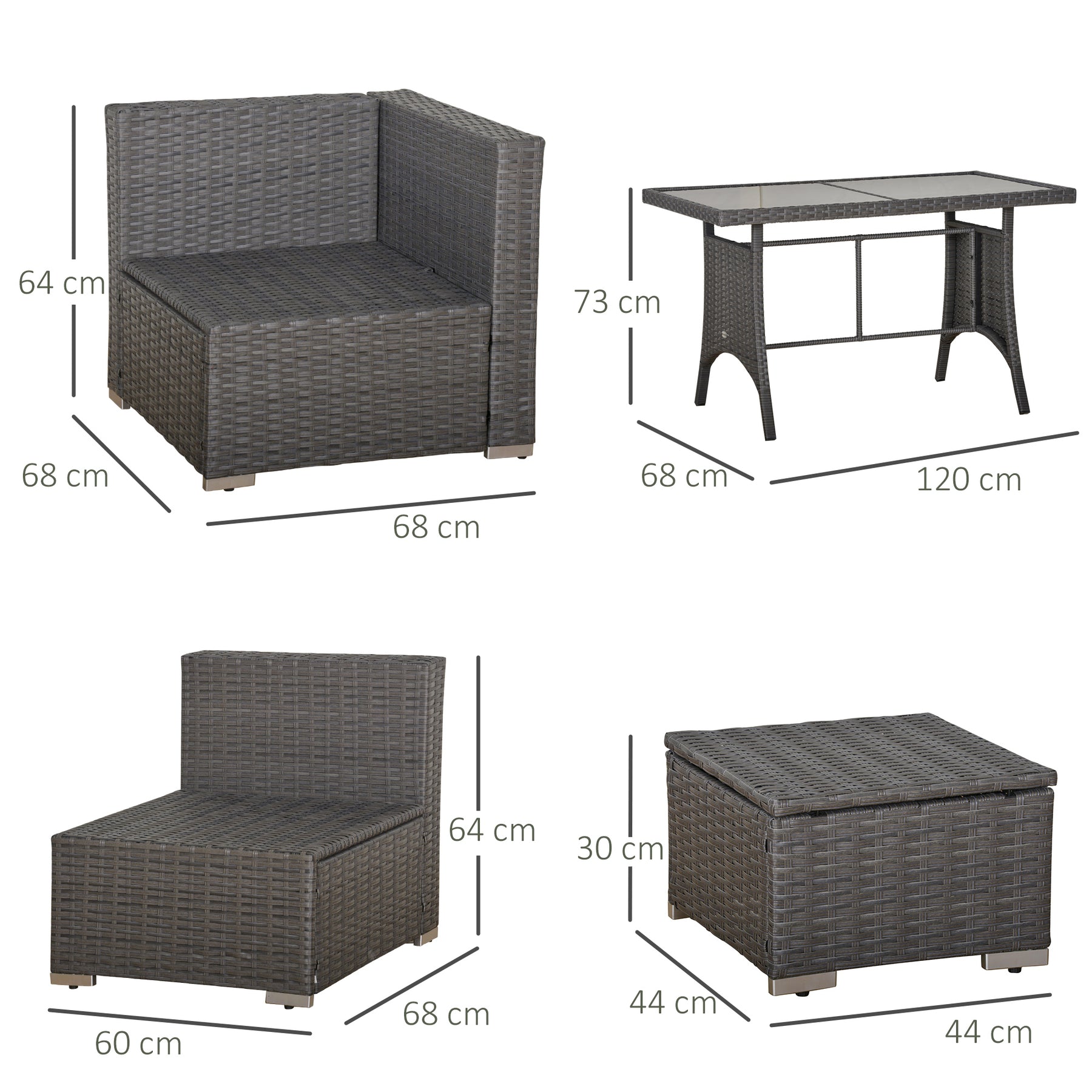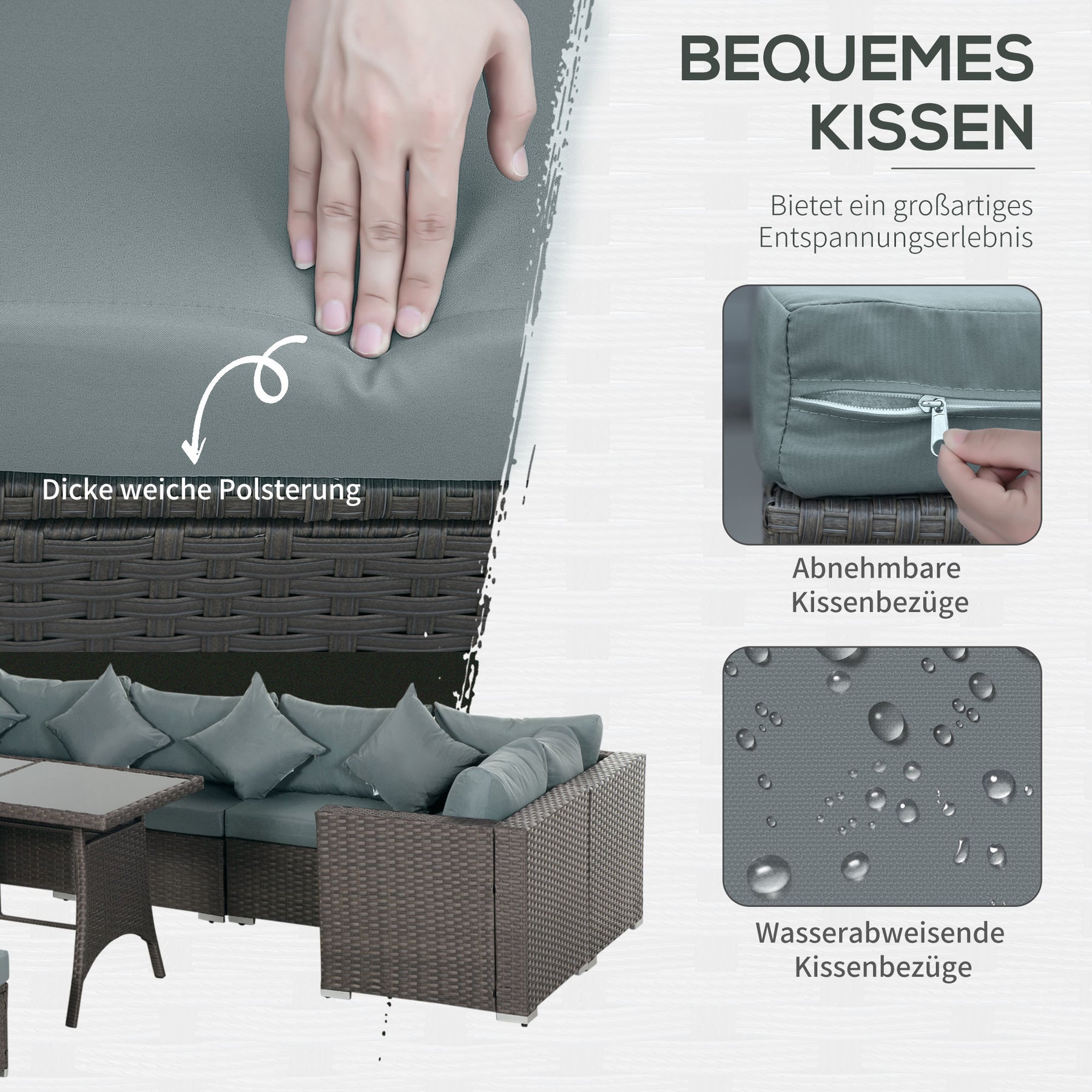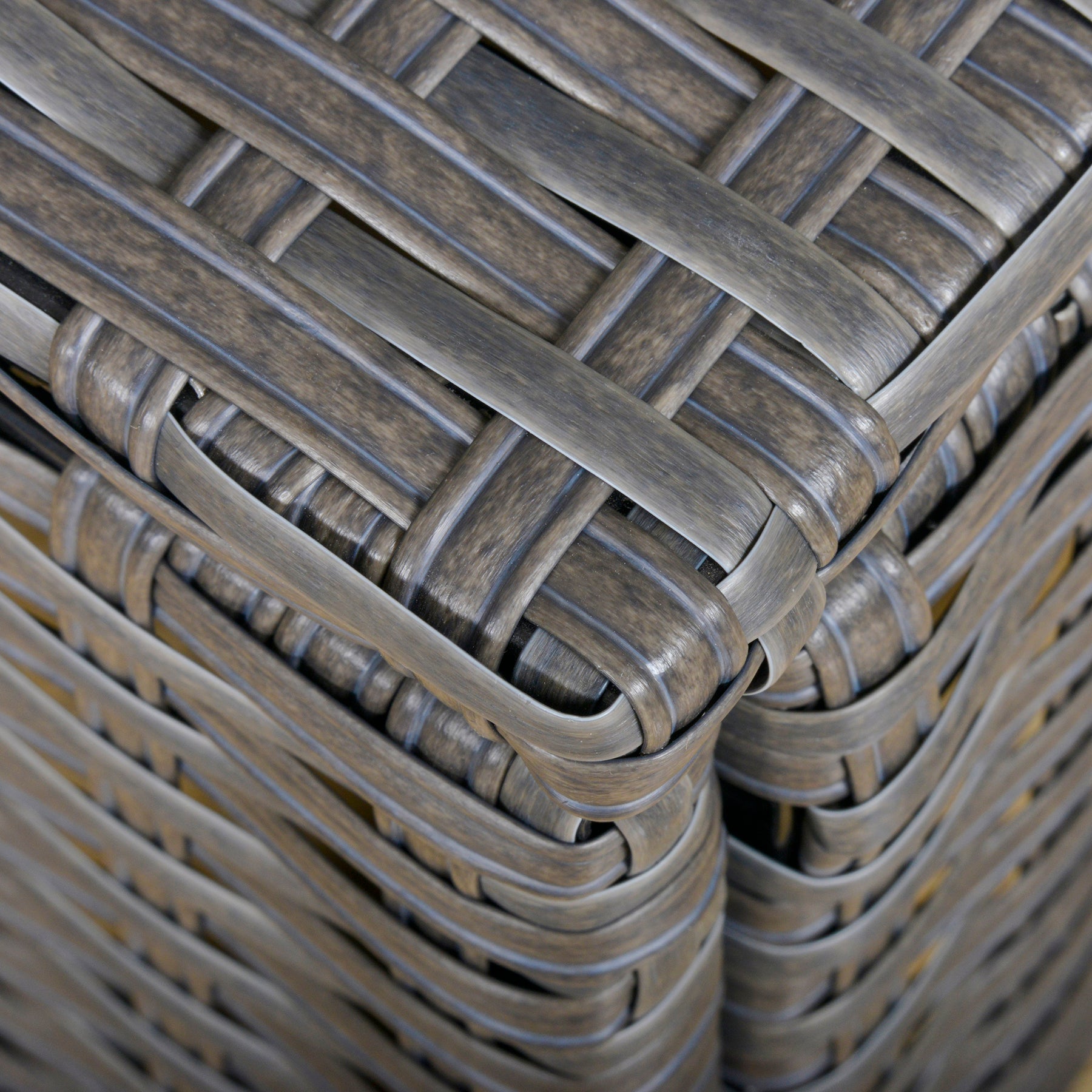 Havesæt med 10 dele i rattan-look med sæde- og ryghynder, rustfri metalramme, mørkegrå