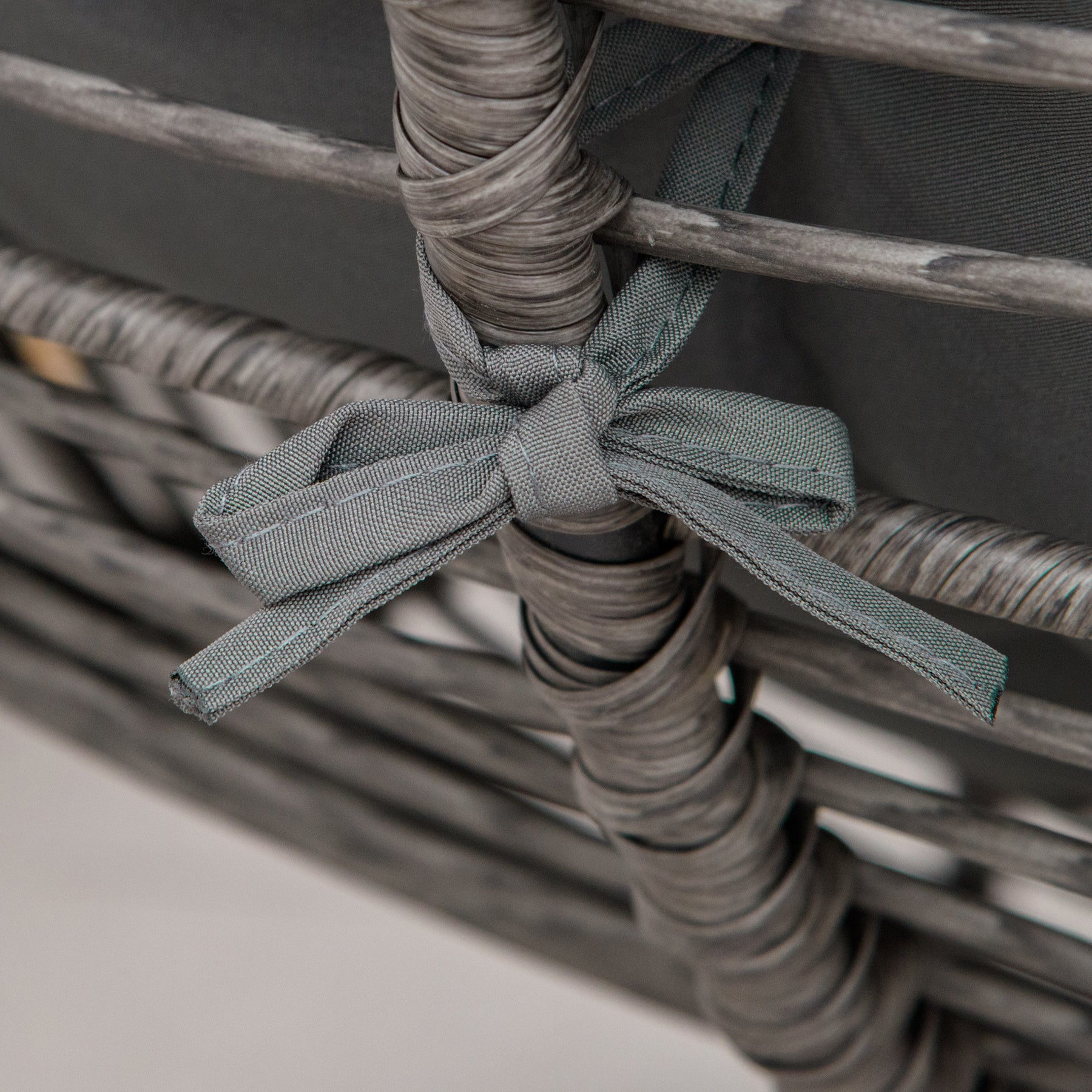 Forvandl din terrasse til et stilfuldt og afslappende fristed med dette moderne rattan-stolsæt. Den robuste stålramme kombineret med vejrbestandigt syntetisk rattan sikrer, at dette sæt holder i mange år. Oplev den unikke komfort med det buede, ergonomiske sæde og de bløde hynder.