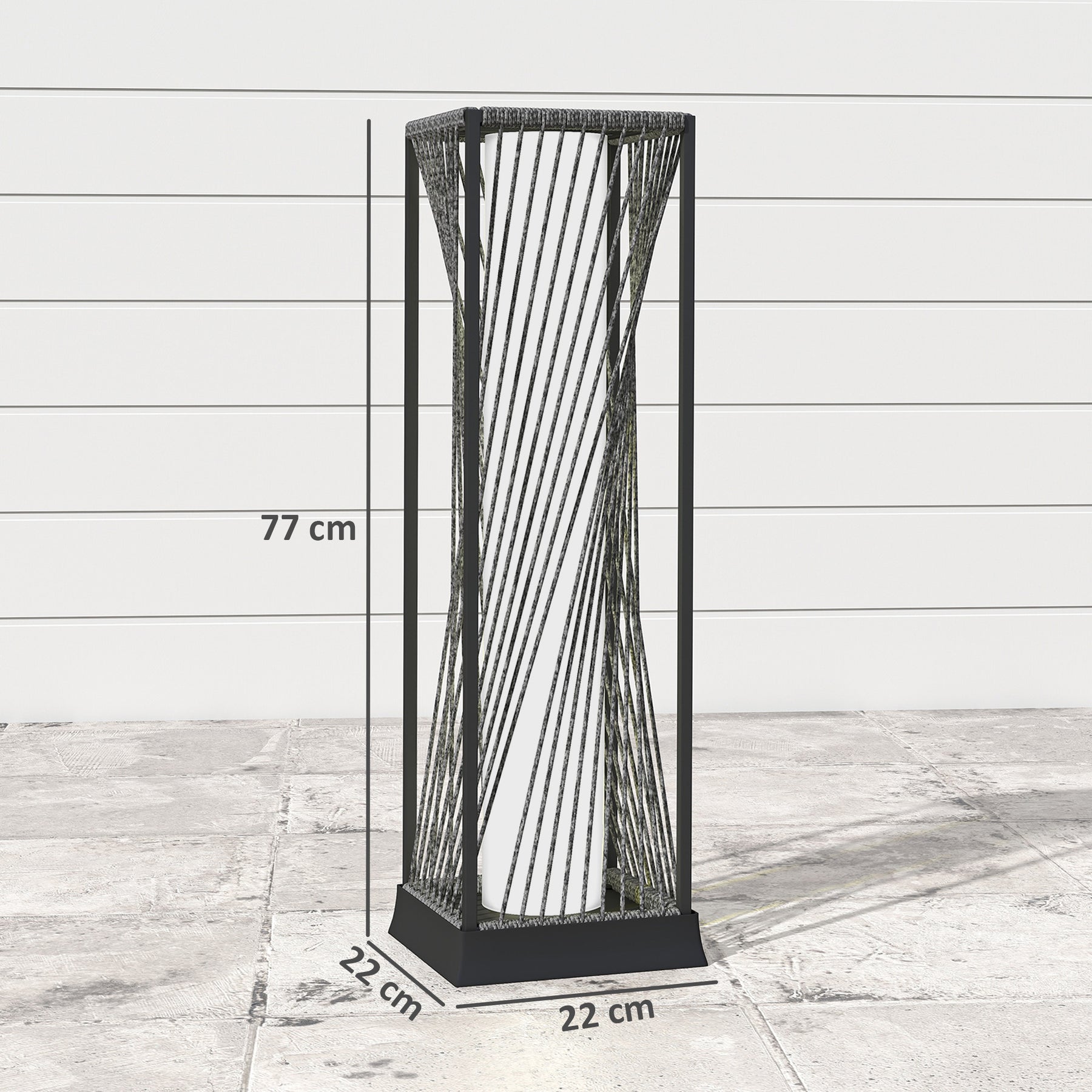 Oplys din have med denne stilfulde solcellelampe! Den leverer 15 lumen af varmt hvidt lys ved en farvetemperatur på 2500 K og tændes automatisk om aftenen, så du ikke skal bekymre dig om at slukke. Den håndflettede lampe i PE-rattan kombinerer elegance med holdbarhed, og med en robust stålramme er den vejrbestandig.