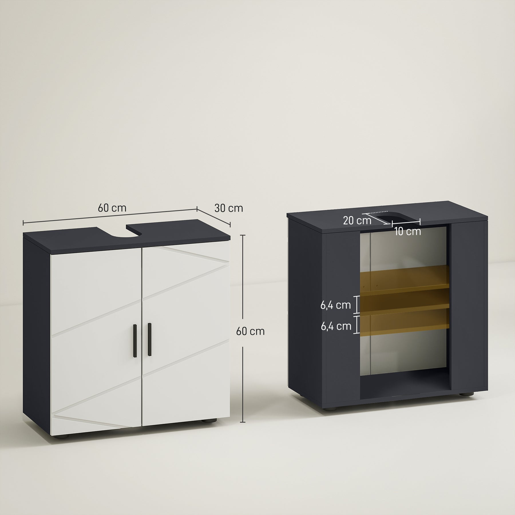 Har du brug for mere plads på dit badeværelse? Selvfølgelig. Dette vaskeskab maksimerer pladsen under din vask, som ellers ville stå ubrugt hen. Ideelt til at opbevare toiletartikler, rengøringsprodukter eller håndklæder inden for rækkevidde.