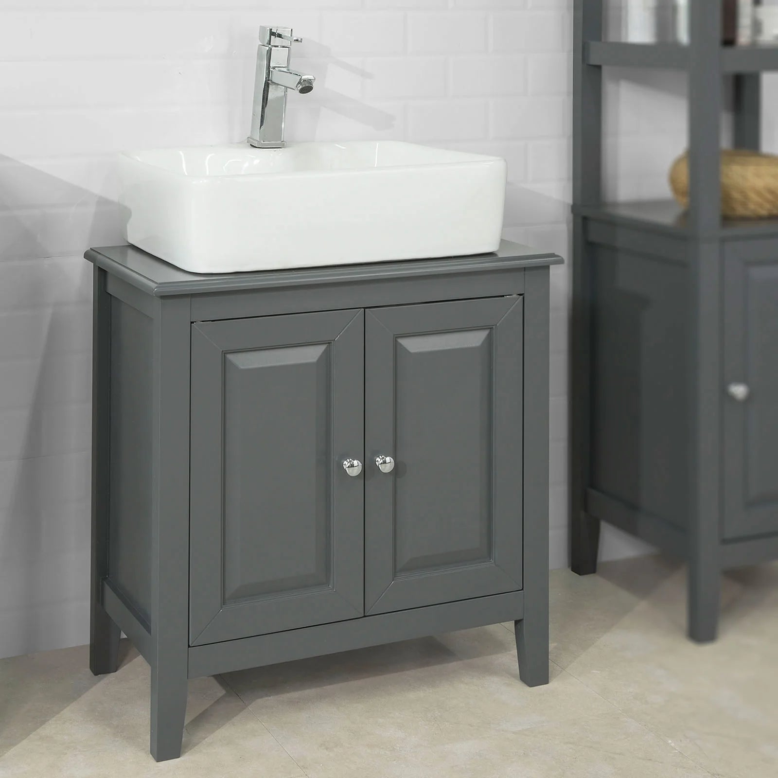 Optimer dit badeværelse med dette elegante og funktionelle underskab. Skabet er designet til at passe perfekt under din håndvask og giver dig masser af diskret opbevaringsplads. Med sit stilfulde, grå design passer det ind i både moderne og klassiske badeværelser.