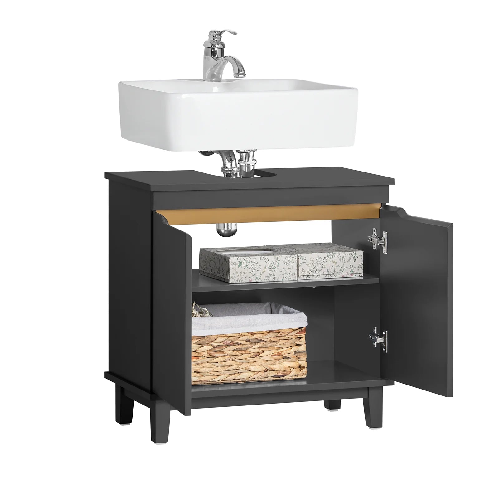 Dette underskab er en enkel og effektiv løsning til at skjule rørføring og optimere ordenen på dit badeværelse. Fødderne i fyrretræ med beskyttende dutter hjælper med at beskytte skabet mod fugt fra gulvet.