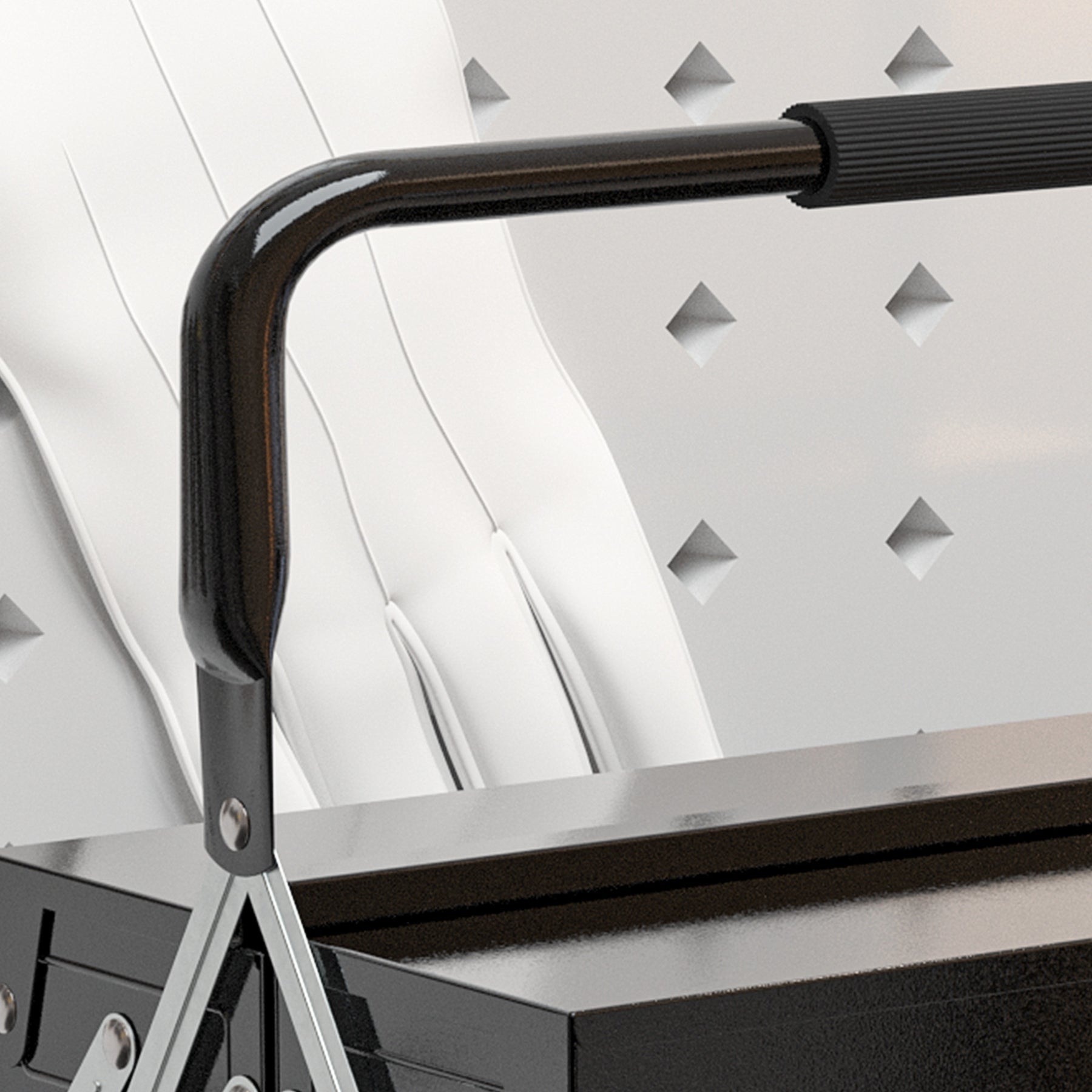 Med denne værktøjskasse har du altid dine værktøjer lige ved hånden. Tre niveauer og fem rum giver masser af plads til værktøj og tilbehør. Den er lavet af stål af høj kvalitet, der er rustfri og ridsefast, og dens bærehåndtag gør den nem at transportere.