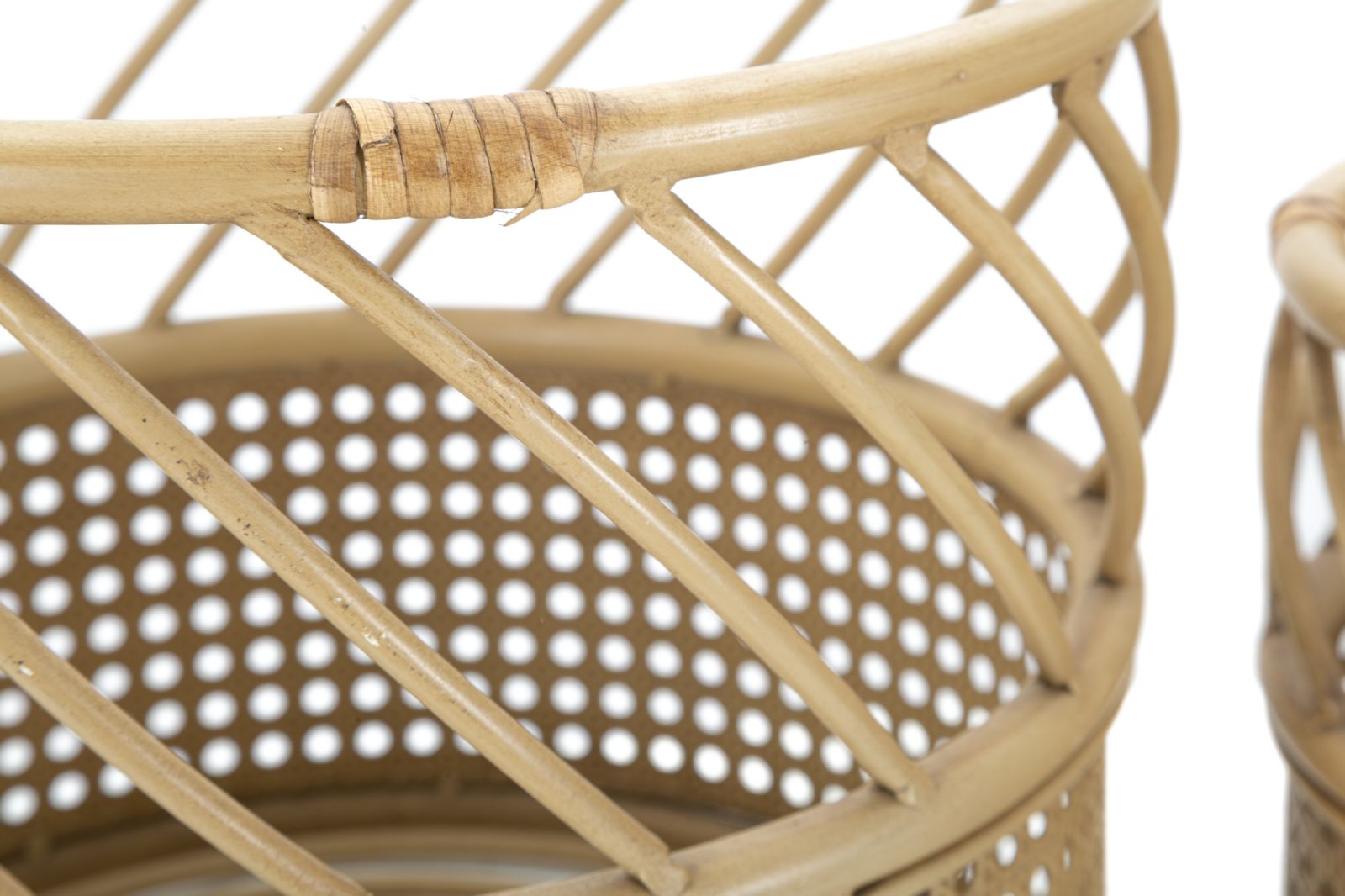 Designet har et særligt fletværk, der leder tankerne hen på klassisk wienerflet, og tilfører et unikt og personligt præg til dit hjem. De runde stativer er ideelle til at fremhæve dine yndlingsplanter og skaber et naturligt og indbydende udtryk i ethvert rum.