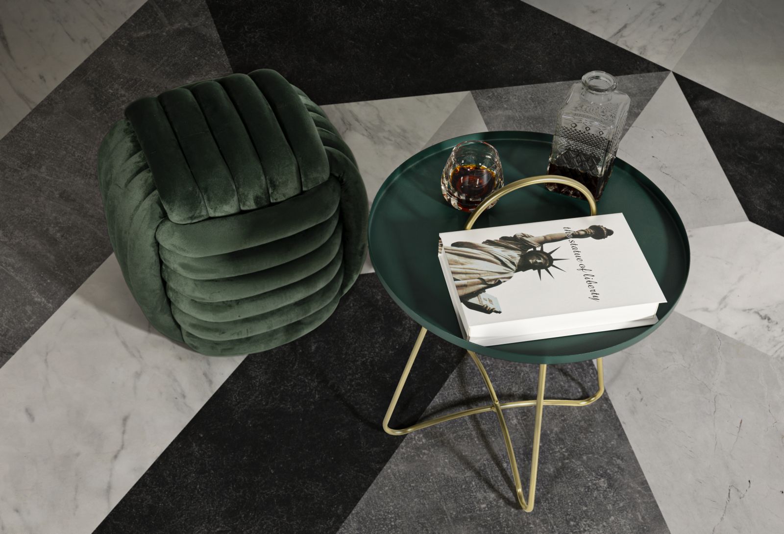 Bordets unikke design med en smuk, grøn satinbordplade og elegante, guldfarvede ben giver et moderne og eksklusivt udtryk. Den raffinerede kombination tilfører et strejf af sofistikation og modernitet til ethvert rum.
