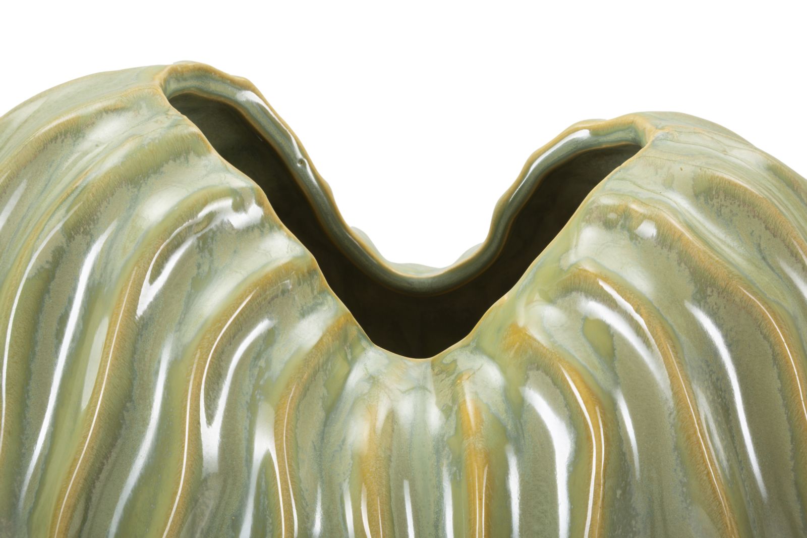 Vasen er en dekorativ genstand med et unikt design og en tekstureret overflade. Den er perfekt til at give ethvert rum personlighed, enten alene som et statement-stykke eller i kombination med andre elementer fra samme kollektion. Placer den i stuen, entréen eller på kontoret, hvor den med garanti vil være et iøjnefaldende element, der fanger blikke.