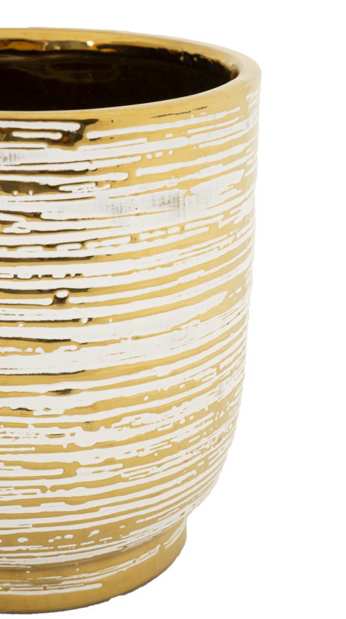 Vasernes unikke, gyldne overflade er smukt dekoreret med elegante dekorationer i guldrelief, som skaber et iøjnefaldende og eksklusivt udtryk. Denne kombination af farver og teksturer tilfører et sofistikeret touch til enhver indretning.