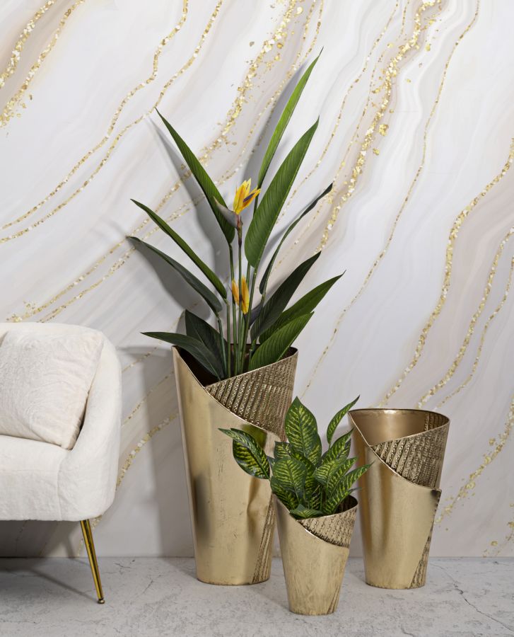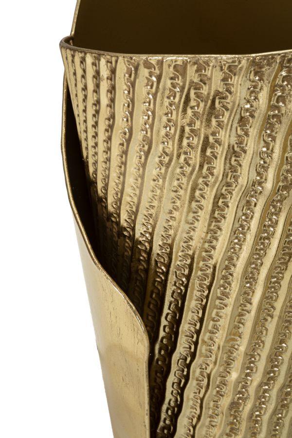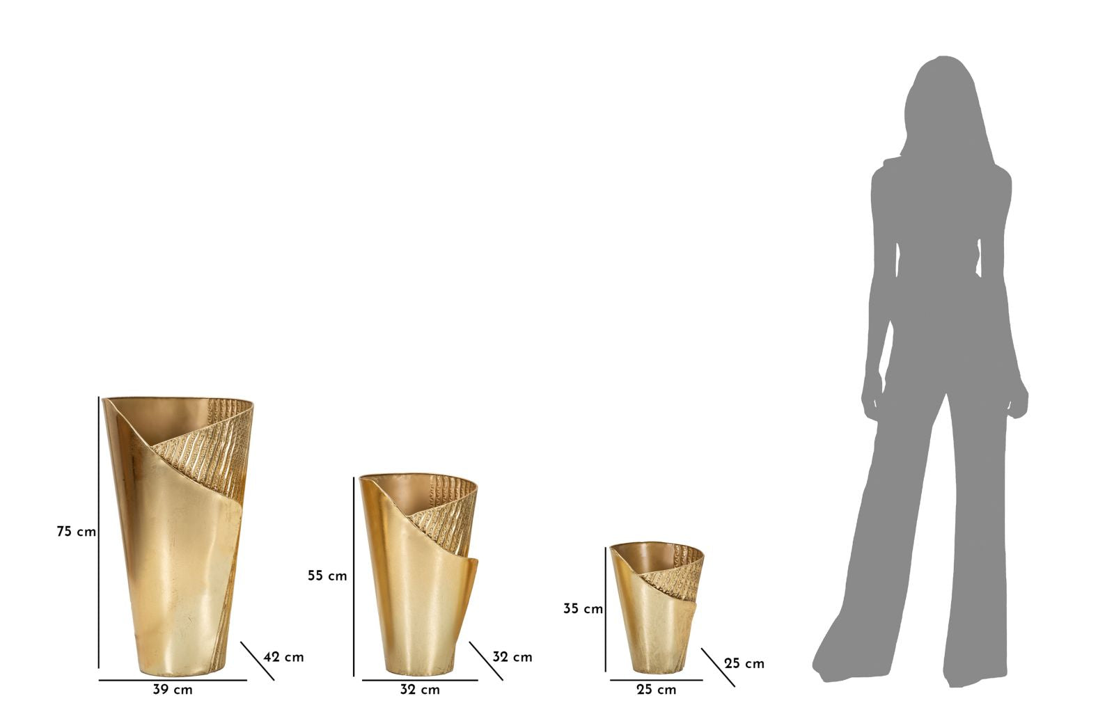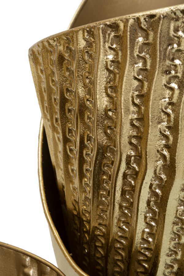 Dette elegante sæt af tre vaser fra Glam-serien er en perfekt kombination af funktion og stilfuldt design. Vaserne er fremstillet af robust guldfarvet jern og udstråler kvalitet og godt håndværk.