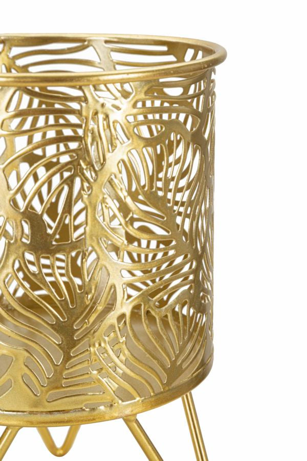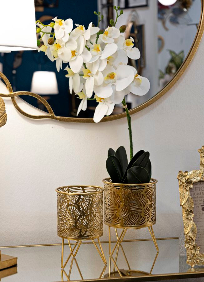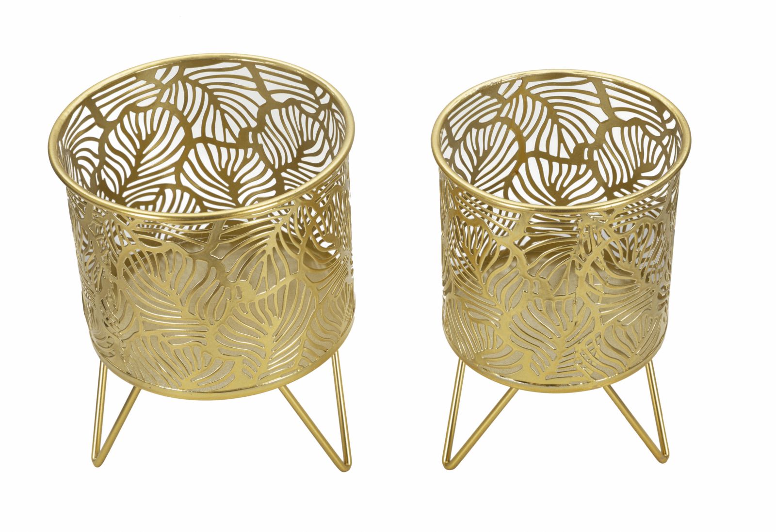 Vasernes elegante udskæringer, der minder om fine blade, skaber et unikt og iøjnefaldende design. I kombination med den gyldne farve giver det stellet et sofistikeret udseende. Vaserne kan nemt tages ud af deres matchende guldstativer, hvilket giver dig frihed til at placere og arrangere dem, som du ønsker.