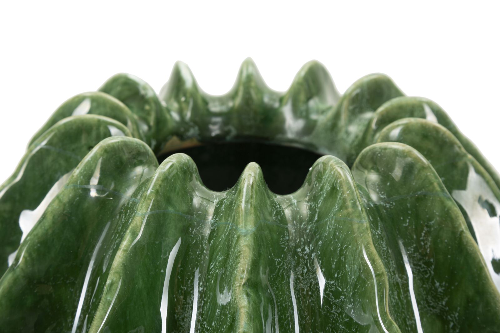 Selvom den er kompakt, har denne vase en stor visuel effekt. Den sfæriske form, den bearbejdede tekstur og den blanke grønne finish gør den ideel til at indrette med en frisk og moderne stil. Placer dette produkt i din stue, entré eller på kontoret, og lad det fungere som et iøjnefaldende element, der skaber et unikt fokuspunkt.