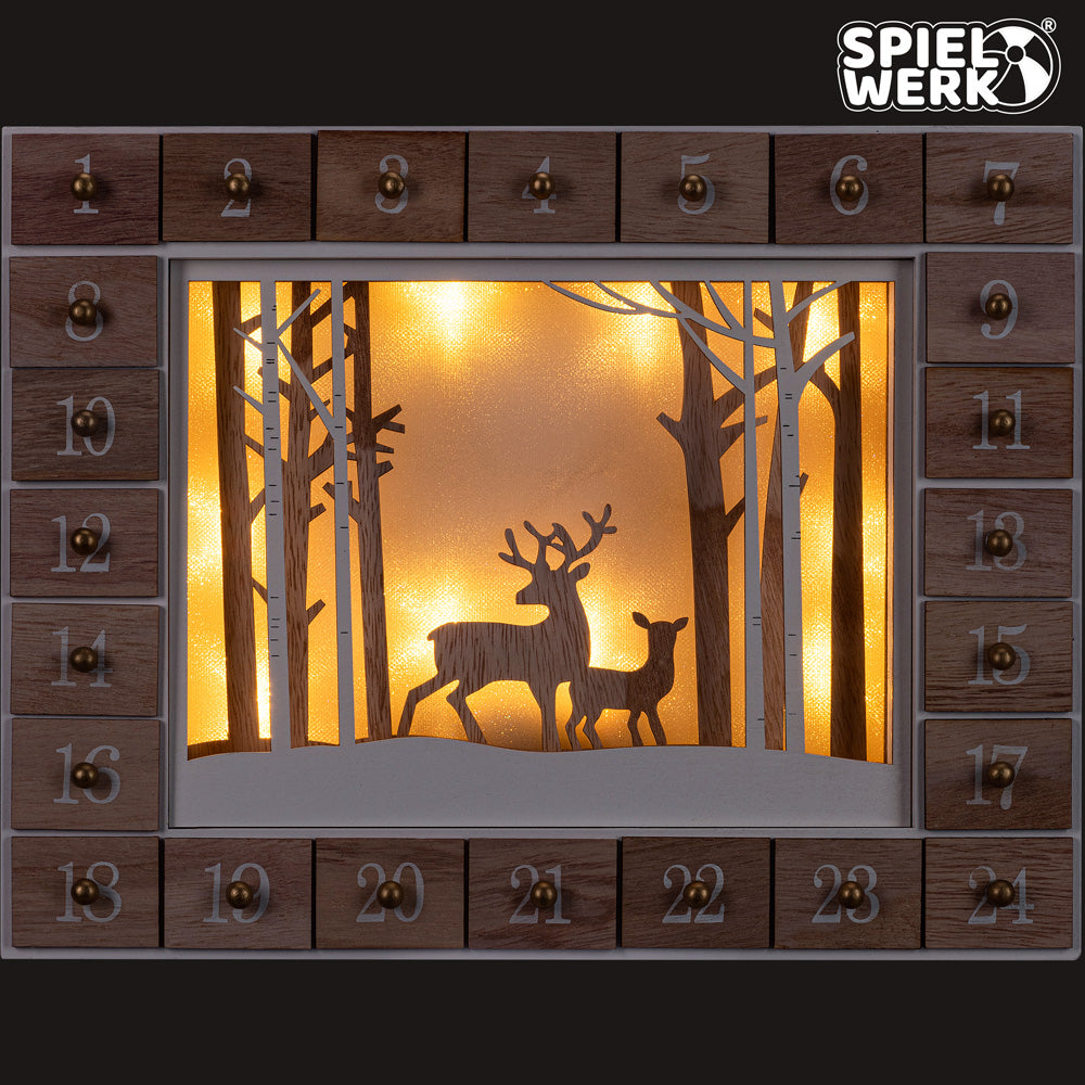 10 varmhvide LED-lys oplyser de midterste ruder i kalenderen og skaber en 3D-effekt.