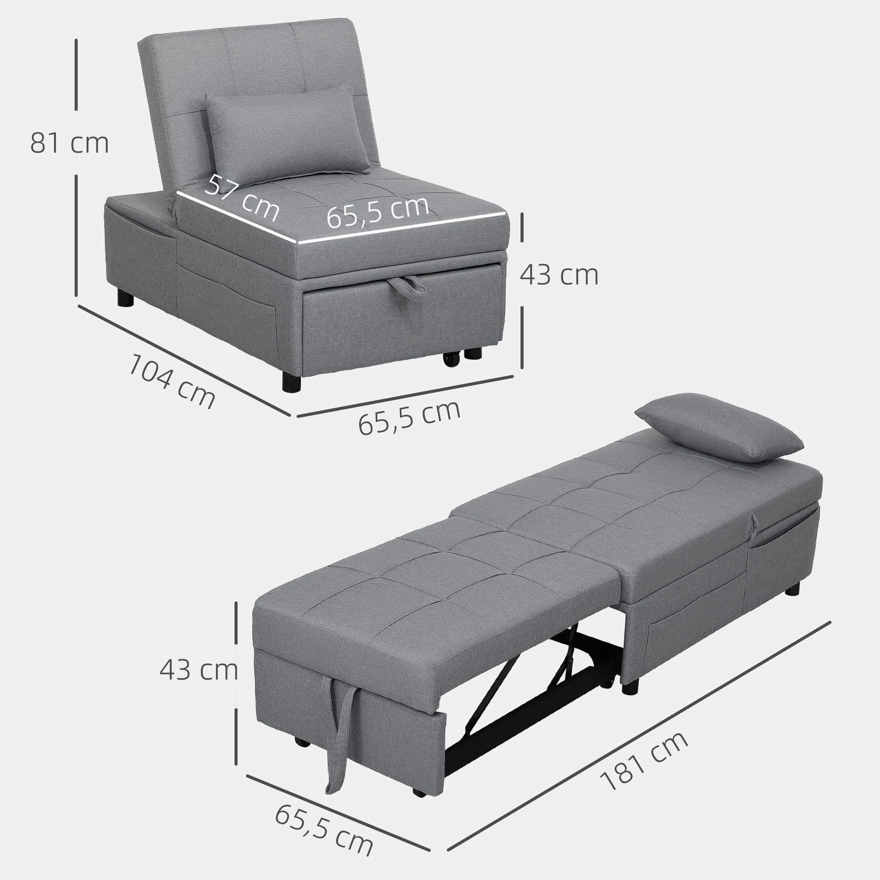 For alle, der ønsker at kombinere æstetik og funktionalitet, tilbyder denne 3-i-1 klapstol den perfekte løsning. Med tre justerbare ryglænspositioner tilpasser den sig ubesværet til forskellige behov, uanset om det er til kundemøder eller personlig afslapning, mens man læser, ser tv eller tager en lur. Det højkvalitetsskum, det linnedlignende betræk og den robuste træramme understreger den kvalitet og stil, du sætter pris på.