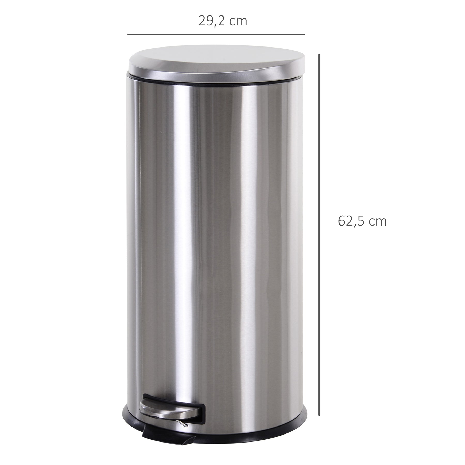 30L skraldespand, pedalspand i rustfrit stål, skraldespand med indvendig spand, skraldespand med låg og fodpedal, til stue, kontor, ø29,2 x 62,5 cm