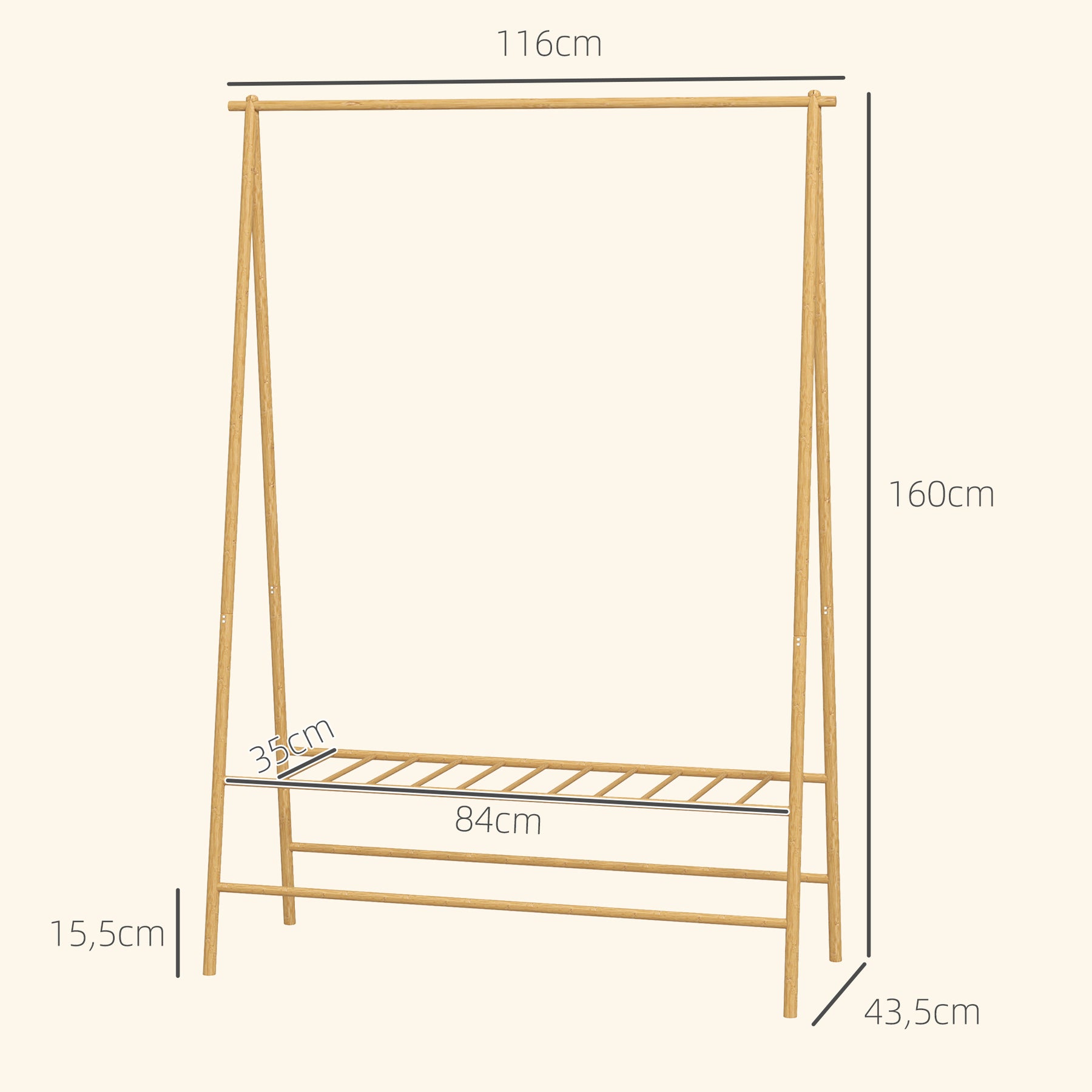 Hold dit hjem organiseret med denne elegante knagerække! Designet i træ har den en øvre ophængningsskinne med to kroge til frakker og skjorter samt en praktisk nedre skohylde til op til fire par sko. Ideel til gangen eller soveværelset, sikrer den, at dit tøj forbliver lige ved hånden, og at der er ryddeligt i din stue.